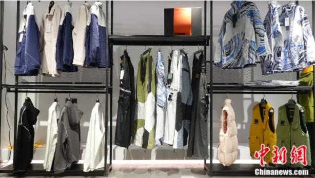 三门一家冲锋衣企业展柜里的冲锋衣。中新社记者 傅飞扬 摄