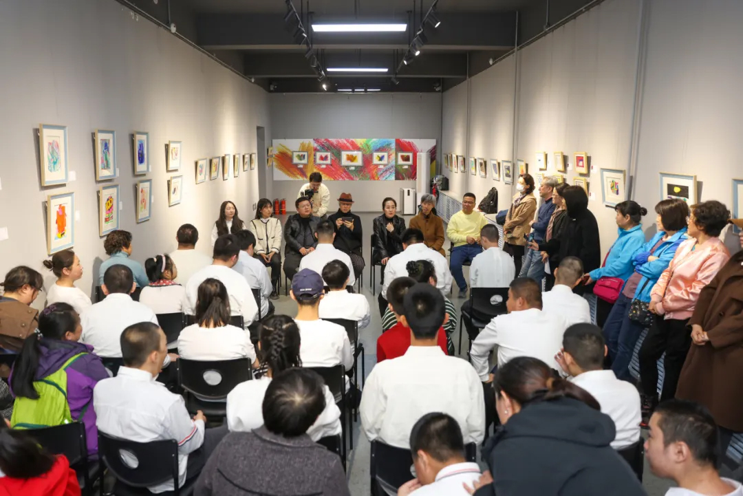 开幕式后,省文联邀请省美术家协会、省评论家协会的刘钻、于冠超、周光浩、吴磊、郭洪权、何慕、于珍珍等专家举办了“大手拉小手”艺术对话会,与“这扇窗”参展作者、家长、观众面对面进行交流分享和研讨。黑龙江建筑职业技术学院团委为每位参展作者捐赠了一套画笔。
