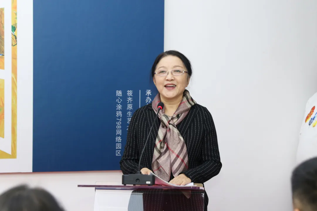 开幕式由省直关工委副主任雷铜主持,省文联党组成员、副主席王广致辞,“随心涂鸦798网络园区”发起人筱齐介绍参展作者情况,刘博超和他的妈妈代表全体参展作者发言。
