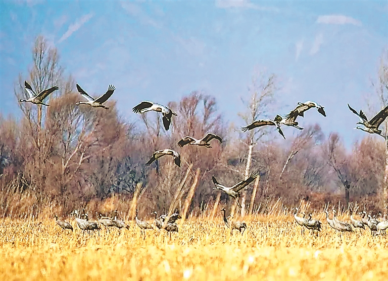 据了解,每年过境农场的候鸟包括大雁、白鹭、东方白鹳、灰鹤等90余个品种,共计数万只鸟类将在这里停留休憩,场面十分壮观,吸引了众多居民和摄影爱好者前来观赏。