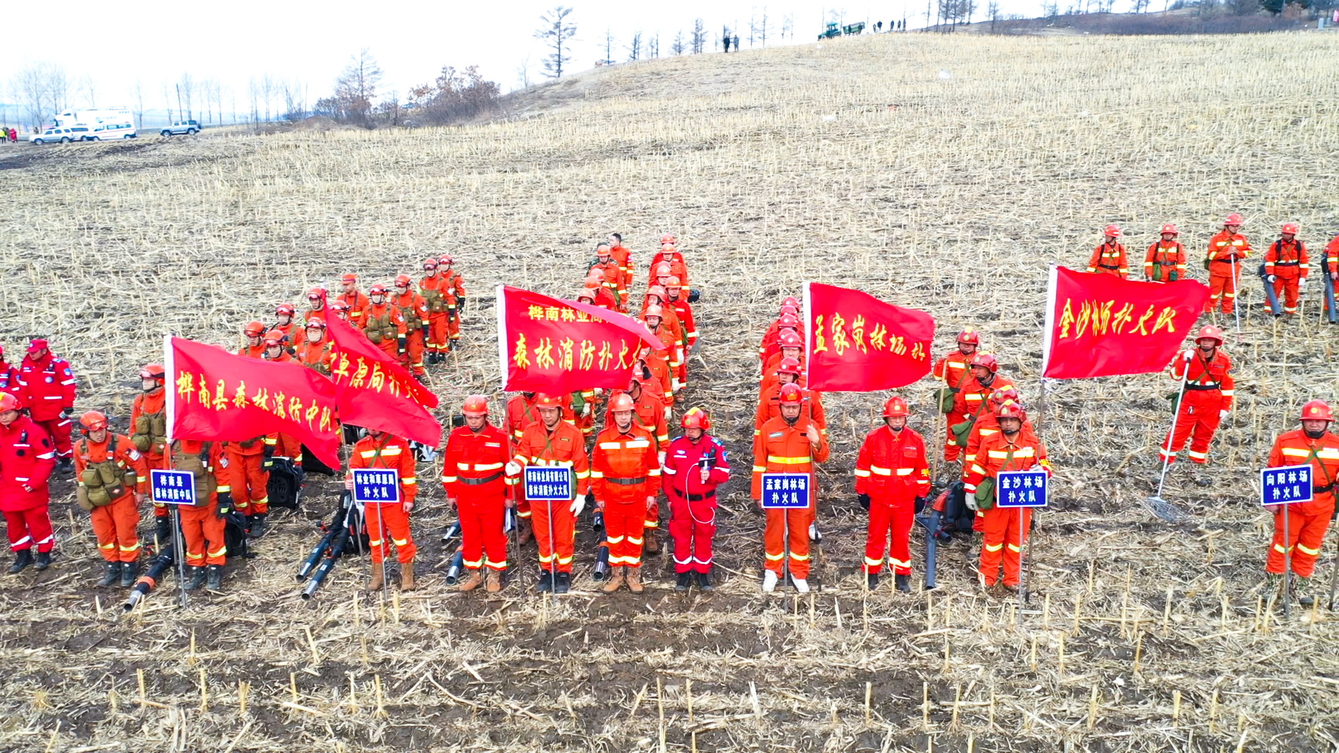 本次实战演练共设16个科目,以桦南县大八浪乡北太平村林缘发现明火为背景,接警后各有关单位迅速反应,各级应急救援队伍第一时间集结到位。到达现场后,救援力量迅速成立现场指挥部,根据灭火救援预案,指挥各作战单元按照各自分工有序投入灭火实战演练。