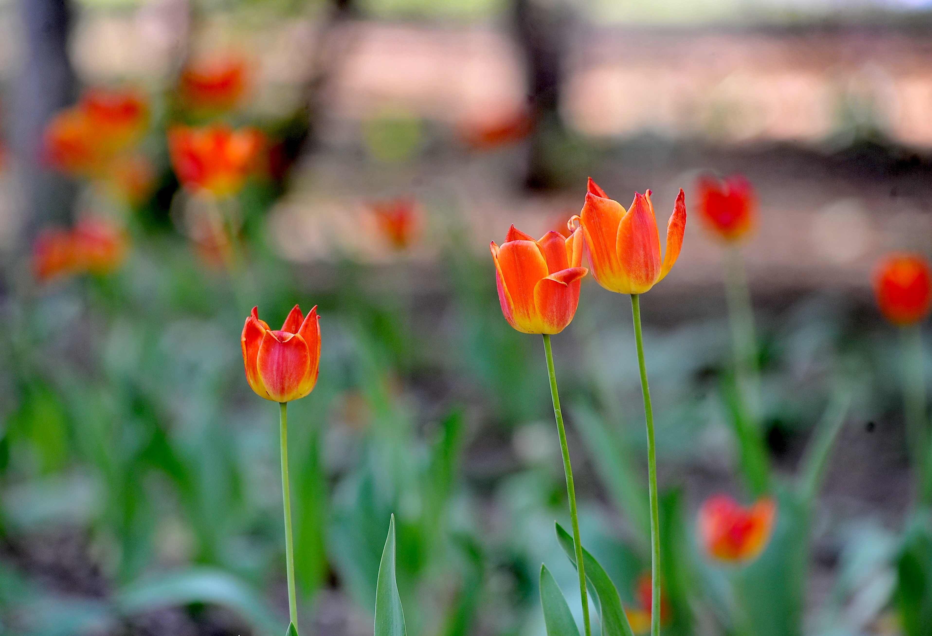 8日,在哈尔滨文化公园绿地里,数百株郁金香花迎风绽放,非常美丽,吸引许多市民、游客前来打卡拍照。