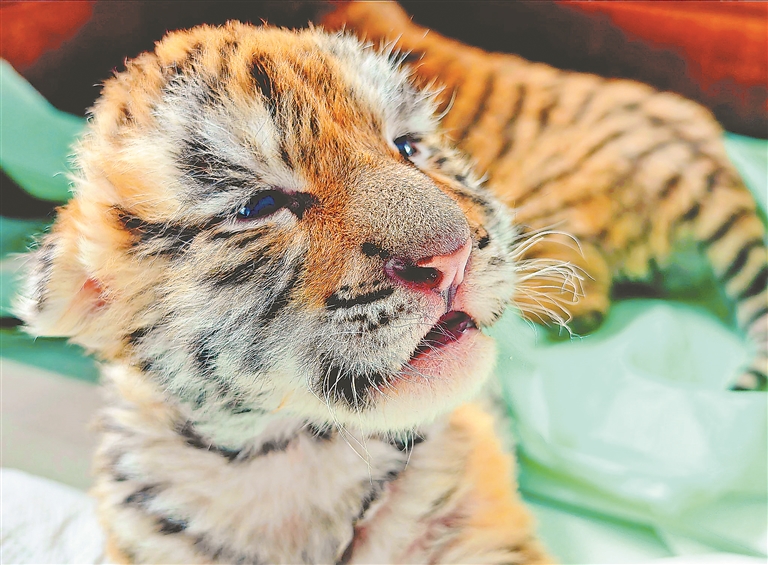 据悉,5月1日凌晨1时23分,三只东北虎妈妈顺利产下5只幼崽,为三只雄性和两只雌性。由于小虎宝们出生时体质较弱,饲养员们将它们放入保温箱中。经过了10多天的悉心照料,5只小虎宝的身体状况十分良好。