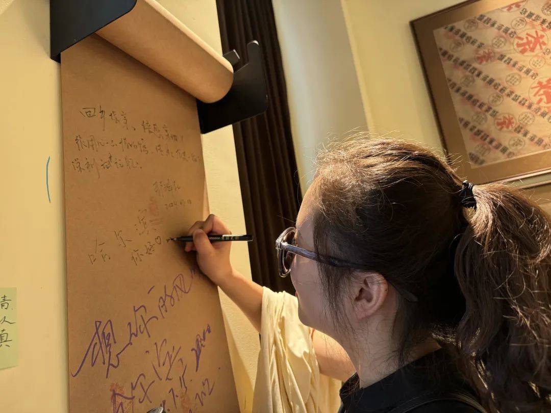 “哈尔滨是一座有历史味道的城市,走进老建筑里的博物馆,让我们对它有了更深的了解。”来自江西的游客王女士也拿起笔,写下“你好,哈尔滨”的留言。