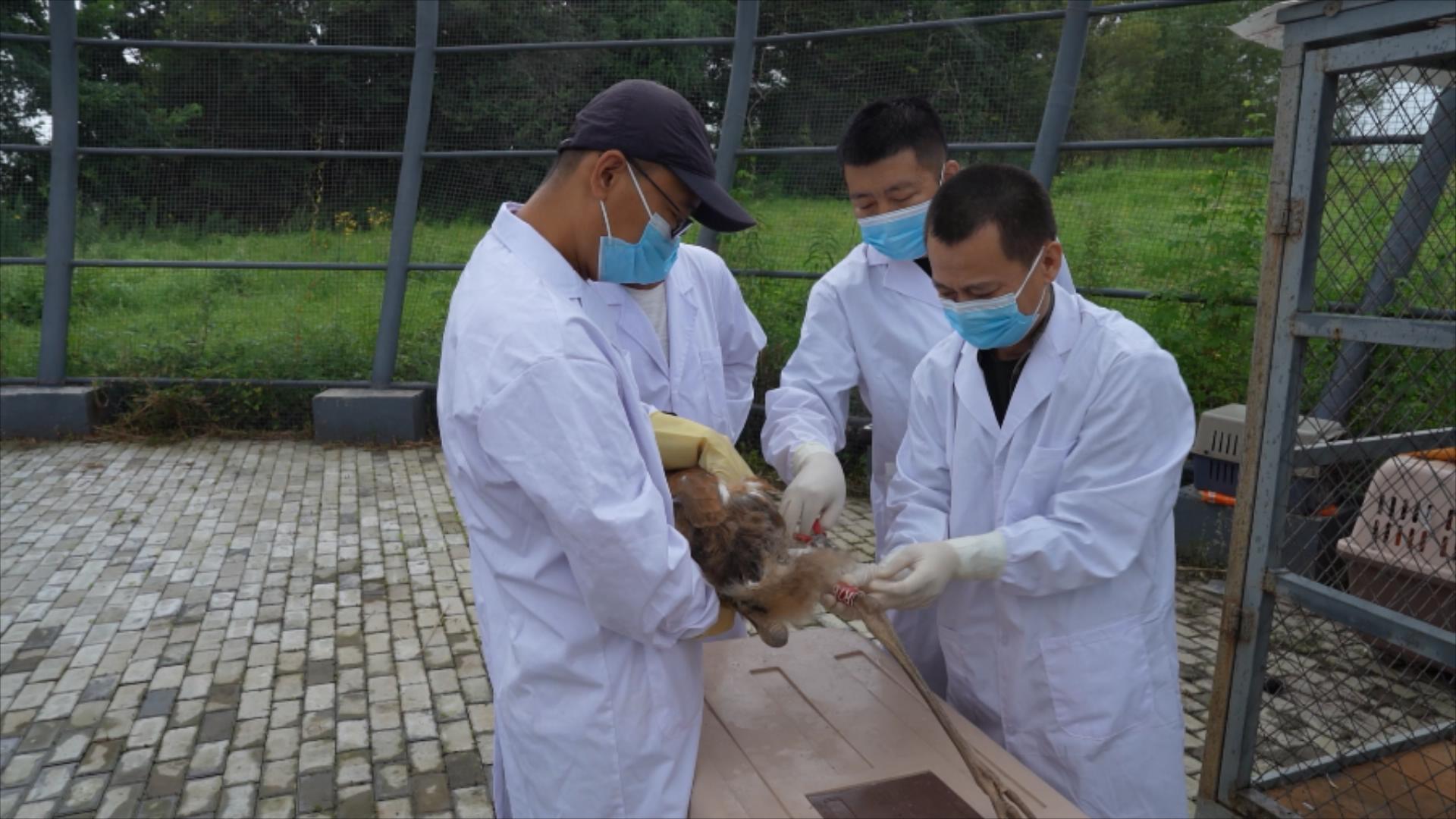 在现场,经救护站工作人员的仔细确认,发现是一只受伤的丹顶鹤幼鸟,是鹤科鹤属的一种大型涉禽,国家一级重点保护动物,在我国野外生存的仅有几百只,属珍稀、濒危野生动物。黑龙江国家级兴凯湖自然保护区管理局科研宣教中心主任刘化金,“它是将近70日雏龄,我们当时也及时赶到了现场,紧急对鸟进行救治,发现翅膀尖有点外伤,但它没有具体的伤痕,排除了野生动物的一个撕咬的问题。怀疑这只鸟在跟成鸟在林子里头觅食的时候,可能翅膀尖给它刮伤了,我们给它擦了一些碘酒进行急救以后,及时的把它就送到我们的救助站了。目前,这只幼鸟状态非常好,为防止这只鸟因为饲养的时间越长,对人的依赖性越强,在治疗康复后,及时放归到野外。目前,这只受伤的丹顶鹤幼鸟经过悉心救护,身体状况良好,体能完全恢复。”