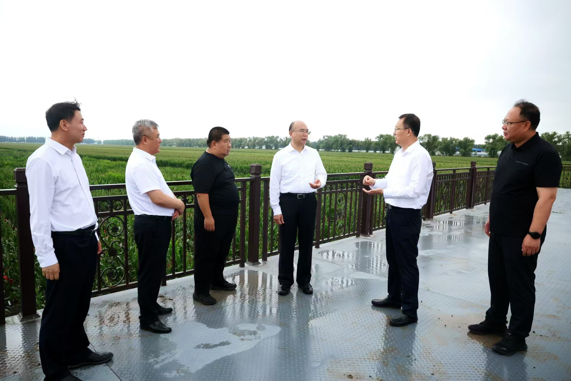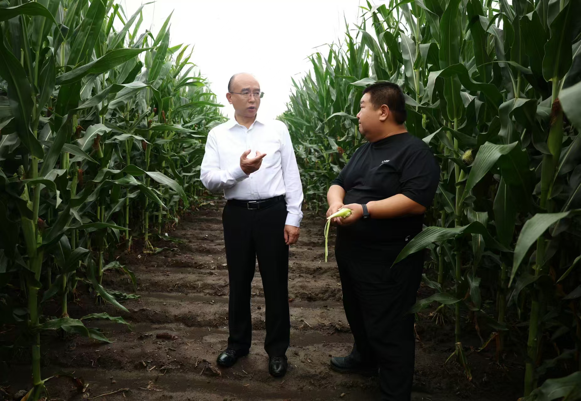 在哈尔滨市双城区铧镒农机合作社,许勤走进田间实地察看玉米长势,听取大垄密植、水肥一体化等高产技术应用介绍,了解惠农政策落实情况。