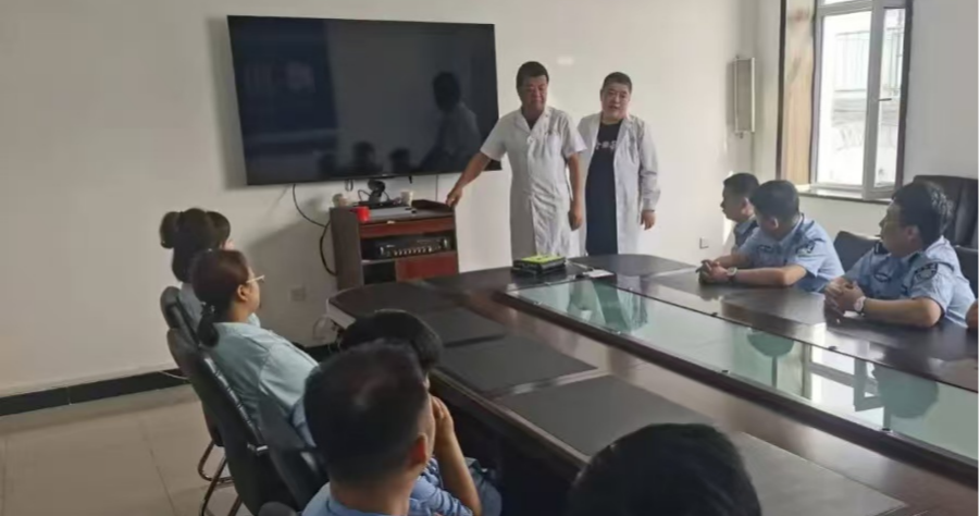 培训中,桦川县人民医院急诊科医生与内科医生详细讲解了AED自动体外除颤器工作原理和正确使用的方法。随后,详细介绍心肺复苏和海姆立克抢救流程、胸外按压和人工呼吸注意事项,现场演示调整体位、开放气道、人工呼吸等操作流程,以及面对监室内突发疾病如何进行快速抢救。