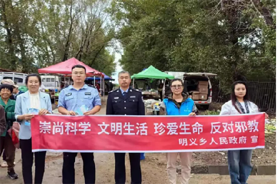 黑龙江网讯(记者 石岩松)为深入推进夏季治安打击专项整治行动,提高广大群众识邪、防邪、反邪、拒邪的意识和能力,弘扬科学精神,让反邪教意识根植群众心中,近日,佳木斯市公安局桦南县局明义派出所联合明义乡政府、明义司法所深入农村大集,开展以“崇尚科学 反对邪教”为主题的宣传活动。