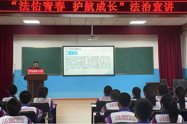 宣讲中,民警以社会关注热点事件及经典案例入手,重点宣讲了预防未成年校园欺凌、校园犯罪、电信诈骗等方面知识,详细讲解了关于民事行为能力、刑事责任能力的年龄划分等问题。引导学生从小培养法律知识,学会用法律手段保护自己,遵纪守法远离不良行为,坚决抵制违法犯罪,在成长的道路上不走歪路,不走弯路,不走歧途,成为对社会有用的人才。