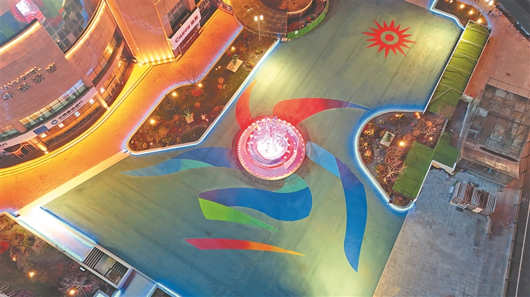 为解决城市公园绿地配套设施不足等问题,结合第九届亚洲冬季运动会城市发展功能要求,南岗体育场改造项目于今年7月份启动。项目整体方案以“冰雪同梦、亚洲同心”为核心立意,设置冰雪体育文化体验区和冰雪体育文化先导区两部分,新建地标性景观“冰雪之冠”核心雕塑。“冰雪之冠”主体蓝色雪花造型采用幻彩高透树脂材料制成,外围环抱的幻彩飘带寓意“冰雪丝路”,基座上高低错落的水晶灯柱寓意亚洲山地、高原和丘陵地貌,上方装饰48个六方幻彩水晶,代表亚洲48个国家异彩纷呈,设置多组音乐灯光,营造流光溢彩的声光电效果。
