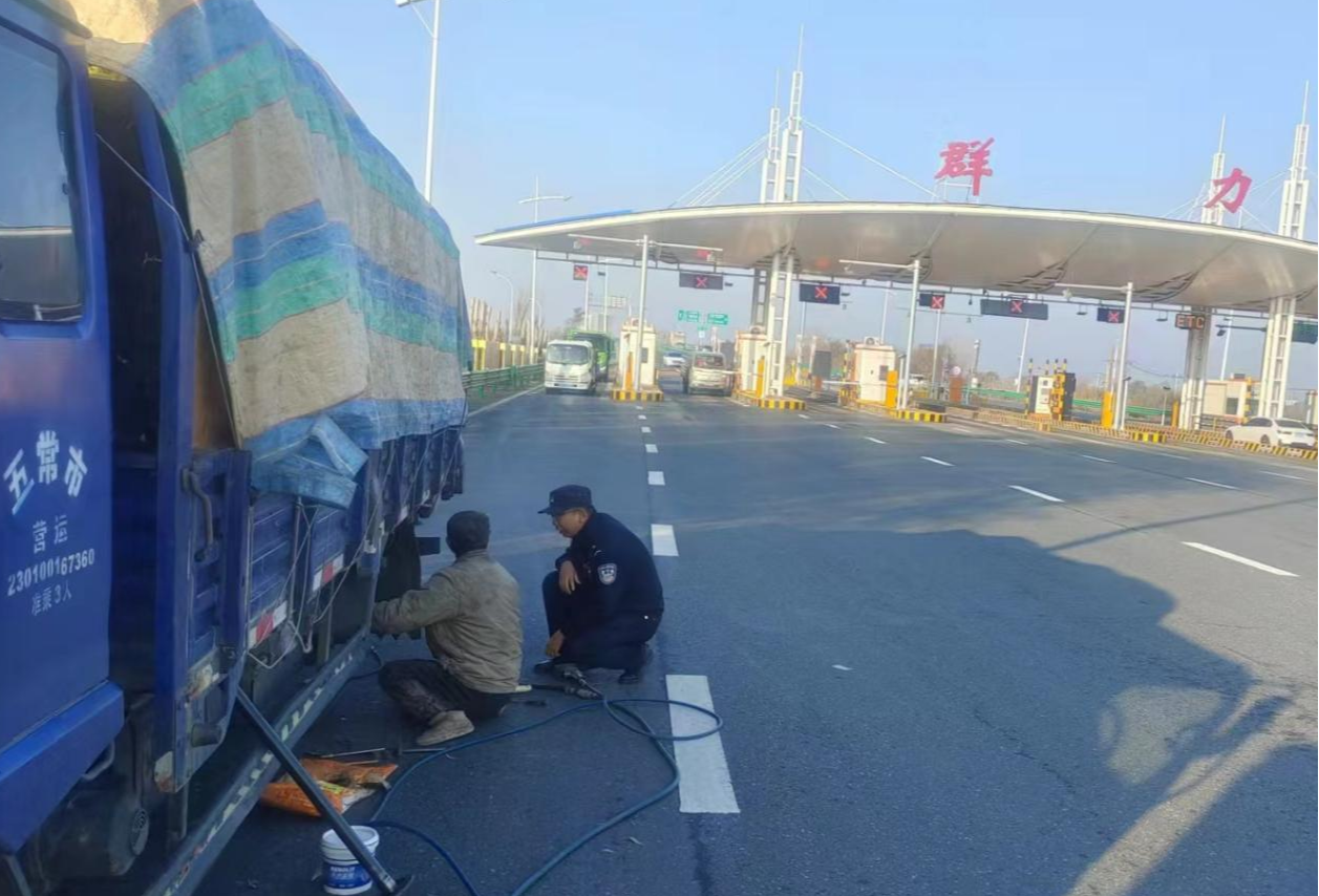 10月28日清晨,哈西公安检查站的执勤民警在进行视频巡查时,发现群力收费站出口处出一大货车开启着双闪警示灯停靠在路边,疑似遇到困难。民警为确保车辆和驾驶员的安全,将该车引导至安全区域后,询问司机是否需要帮助。货车司机称在自己即将抵达收费站时,车辆突然发出巨大的响声,随后察觉到轮胎异常,为了防止事故进一步发生,他谨慎地将车驶离主干道至安全区域。经了解,货车轮胎上的固定螺丝断裂了三颗,仅剩两颗勉强维持,但由于螺丝断裂卡在内部,司机无法自行更换轮胎。加之他作为外地送货人,对当地环境不熟悉,也不知道附近哪有修配厂。民警见状立即采取行动,安抚司机情绪,告知其不要紧张,同时,民警迅速联系了最近的道路救援服务,在等待救援期间,民警持续陪伴在司机身边,确保其安全。不久,专业救援车辆及时赶到,迅速完成了车辆维修工作。在临别之际,民警再次嘱咐司机注意行车安全,小心驾驶。