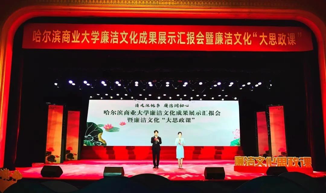 黑龙江网讯(董玮佳 记者 徐楠)12月7日下午,哈尔滨商业大学在南区大礼堂举办“清风沐桃李 廉洁润初心”廉洁文化成果展示汇报会暨廉洁文化“大思政课”,集中展示学校廉洁文化建设成果的同时,持续深入推进大中小学思想政治教育一体化建设,以党员干部师生同上一堂生动鲜活的“大思政课”推动廉洁文化入脑入心。学校领导班子,各基层党委(党总支)书记、副书记,辅导员,思政课教师,以及学生代表共千余人参加活动。