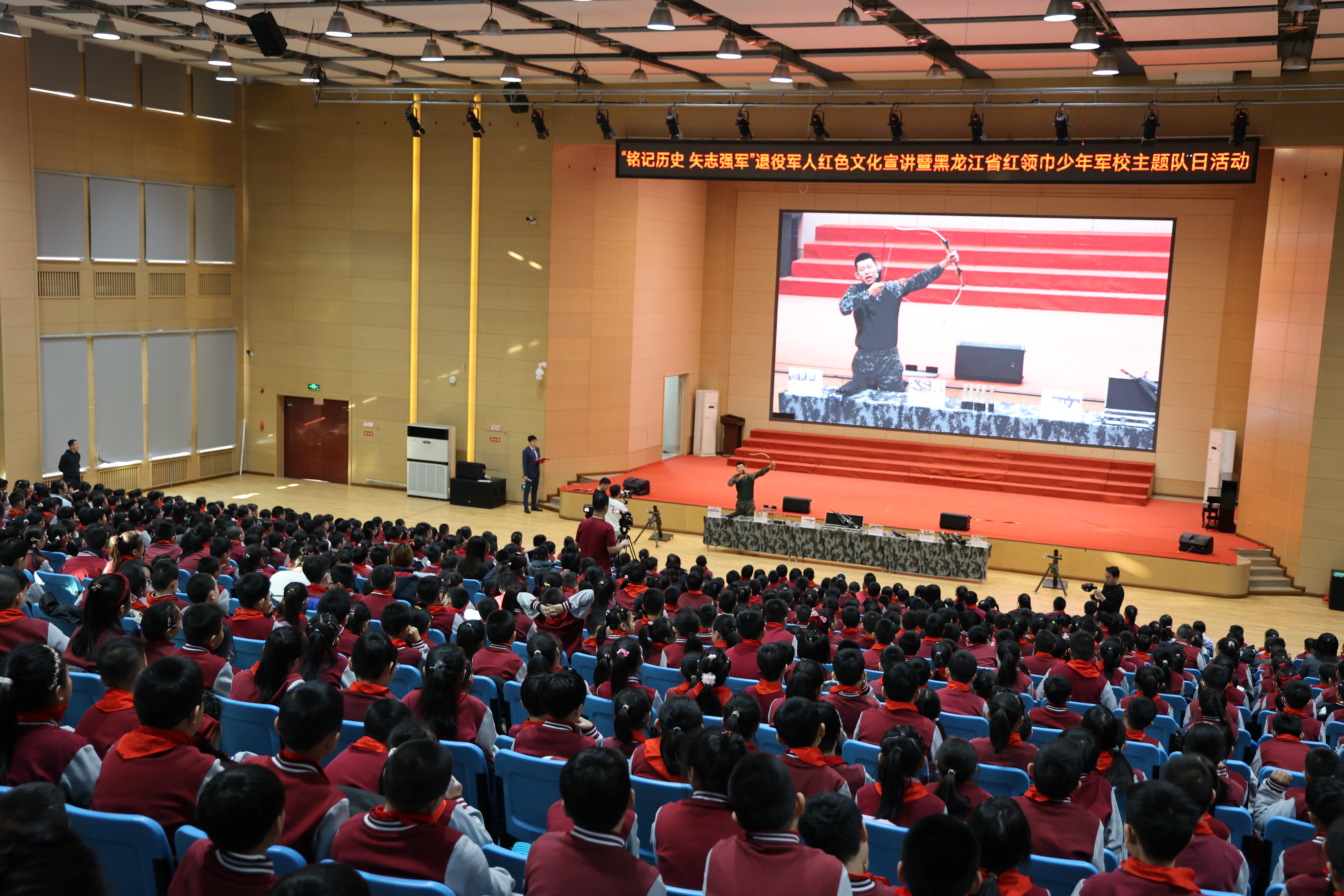黑龙江网讯(吴言 记者 石启立)在第十一个国家公祭日即将到来之际,为缅怀革命先烈、铭记历史教训,弘扬爱国主义精神,普及国防教育知识,切实提高少年儿童的国防观念,12月12日,由团省委、省少工委联合省退役军人事务厅主办的“铭记历史 矢志强军”退役军人红色文化宣讲暨黑龙江省红领巾少年军校主题队日活动在哈尔滨德强小学校举办,少先队员、少先队辅导员、退役军人代表等700余人参加活动。