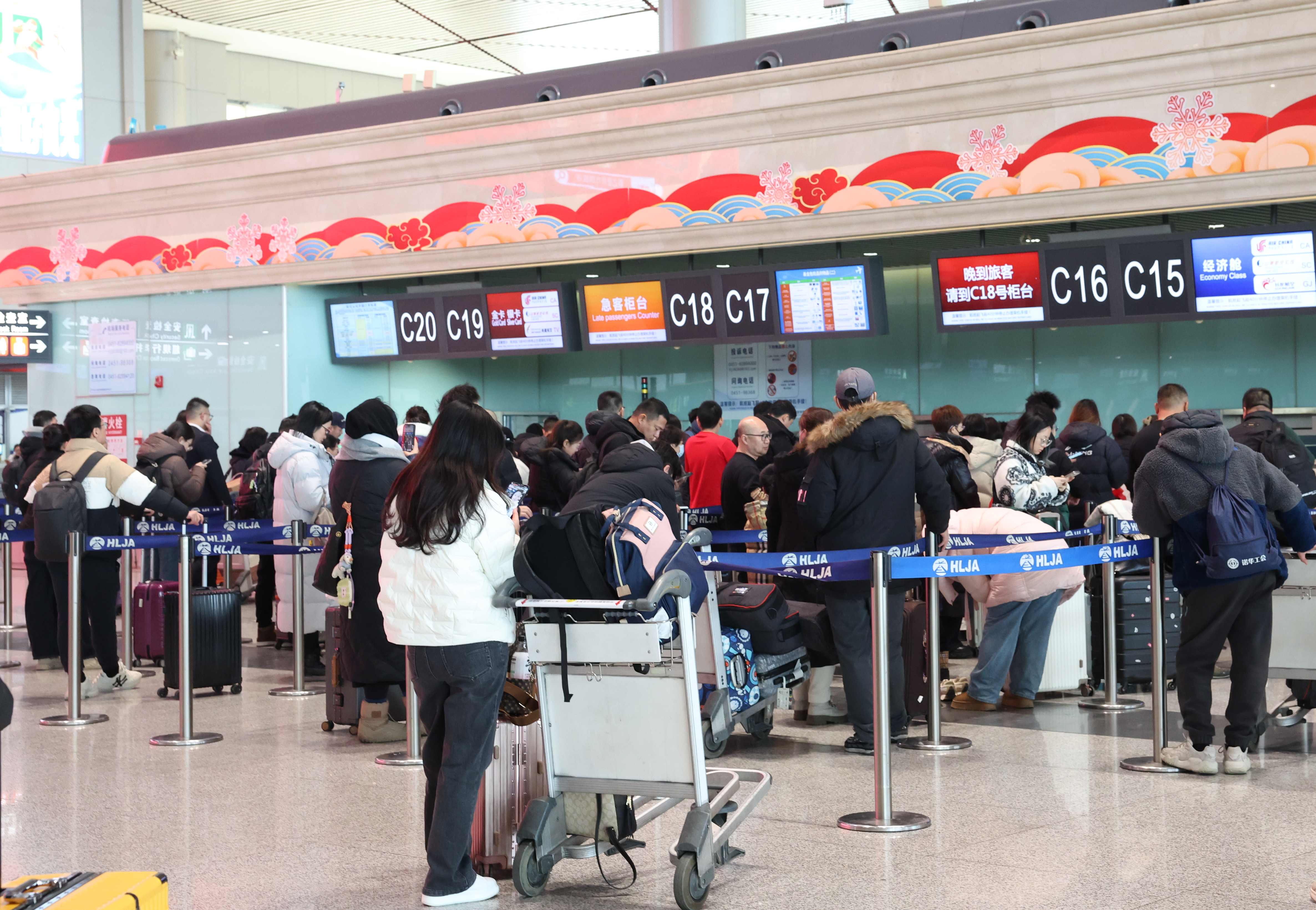 今年春运,冰雪旅游与亚冬盛会的双重加持,让哈尔滨机场人气爆棚。进出港航班客座率超 90%,单日旅客量 12 次打破纪录,2 月 5 日更是高达 98919 人次,刷新单日旅客量历史纪录。随着 “春节” 申遗成功以及中国全面放宽优化过境免签政策,外国游客来华热情大增,春运期间哈尔滨机场出入境旅客量达 8.5 万人次,同比增长 64.2%。