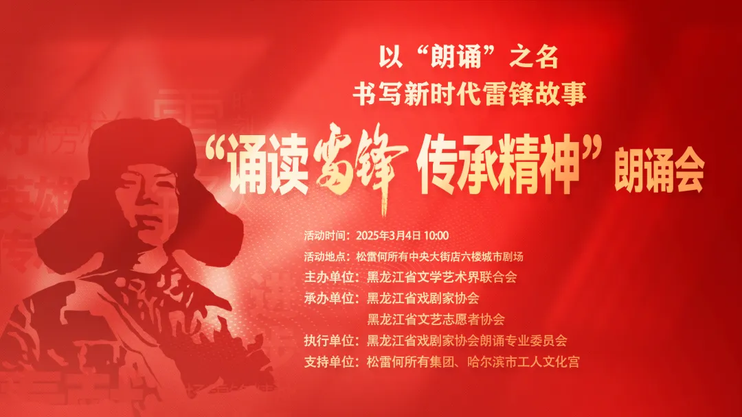 3月4日,由黑龙江省文联主办,省戏剧家协会、省文艺志愿者协会承办,省戏剧家协会朗诵专业委员会协办的“书写新时代的雷锋故事”系列活动之“传承精神 诵读雷锋”主题朗诵会在哈尔滨松雷何所有城市剧场成功举办。来自哈尔滨师范大学、哈尔滨话剧院等单位的文艺志愿者,通过饱含深情的朗诵,共同缅怀雷锋同志的光辉事迹,传承和弘扬雷锋精神,以诗传情、以声塑魂,为观众呈现了一场跨越时空的对话。