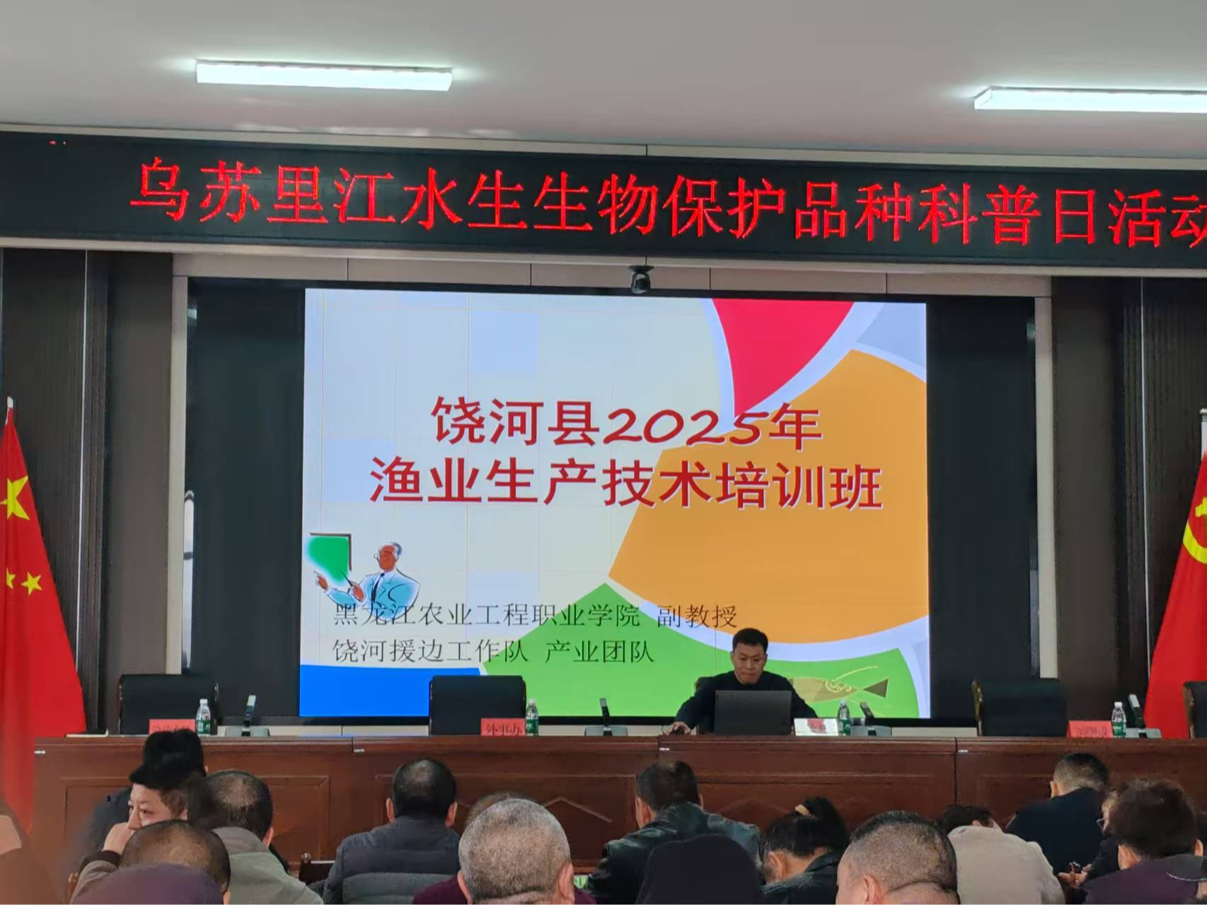 黑龙江网讯(记者 宋菲)3月20日,黑龙江农业工程职业学院动物科技学院水产专业援边教师赵冰海在饶河县“2025年渔业生产技术培训班”和“乌苏里江水生生物保护品种科普日活动”中,为饶河县9个乡镇的130余名渔民提供了深入实用的培训指导,为当地渔业发展与生态保护注入了新动力。