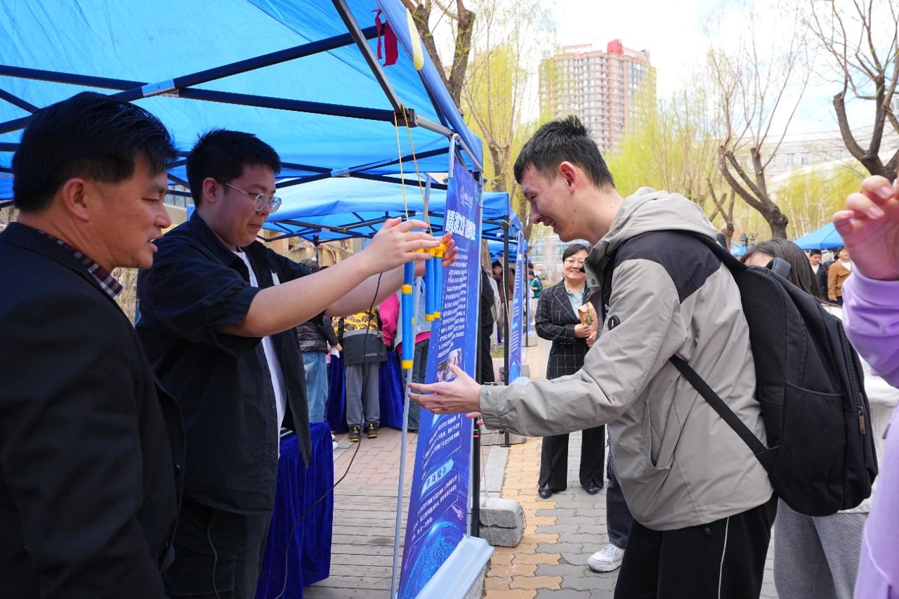 各式各样的沉浸式活动在哈工大步行街上拉开帷幕,吸引大中小学学生驻足体验。体育场上,哈工大学子和孩子们一同见证长征八号甲运载火箭模型、多级模型火箭一飞冲天。无人机特技飞行表演吸引大家围观、连连惊呼。动手拼装模型,以木板、碳管等制作出属于自己的小飞机,设计和制作主题泥塑……丰富的沉浸式体验弘扬航天精神,吸引学子广泛参与。