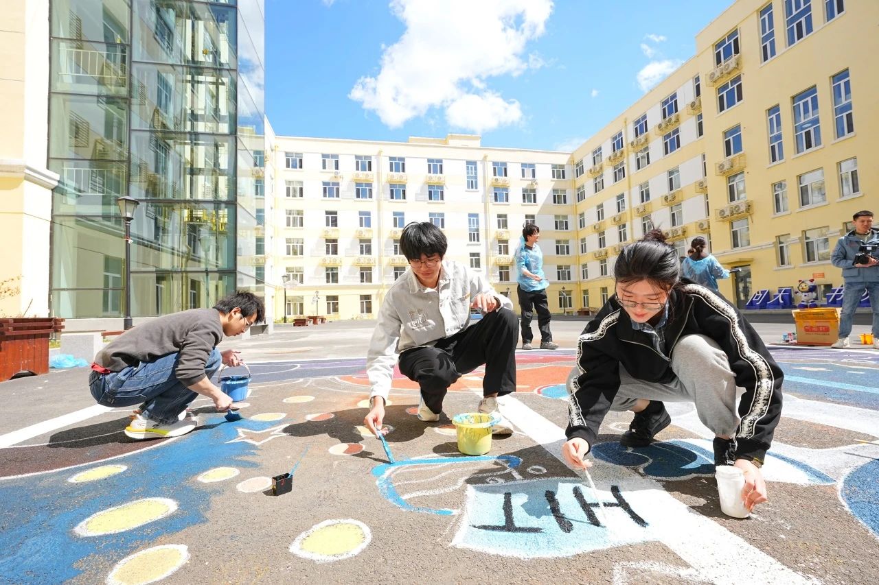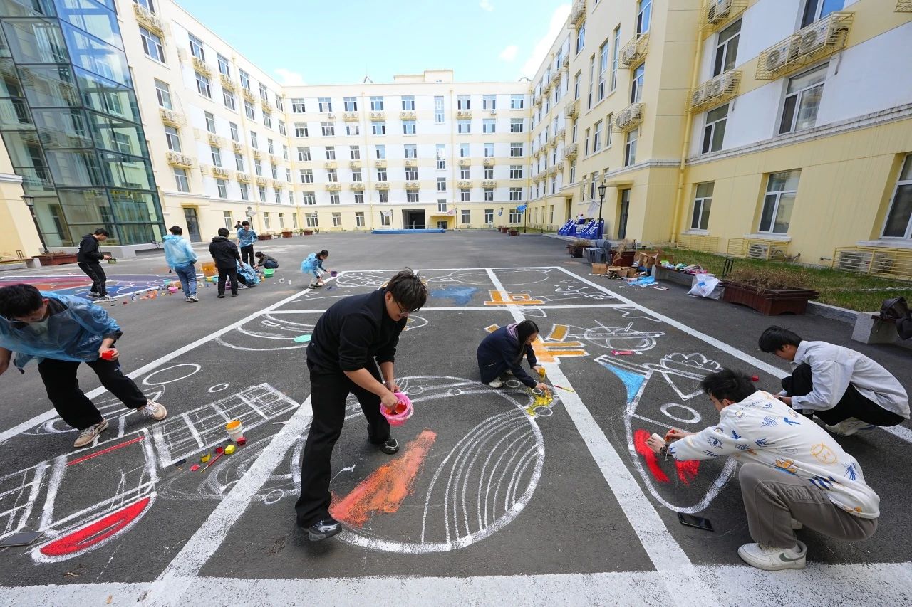 科学灵感碰撞艺术火花,彩绘空间搭建梦想画布,在航天主题长彩绘上,哈工大学子以色彩勾勒宇宙遐想,浪漫星辰与科创精神交相辉映。