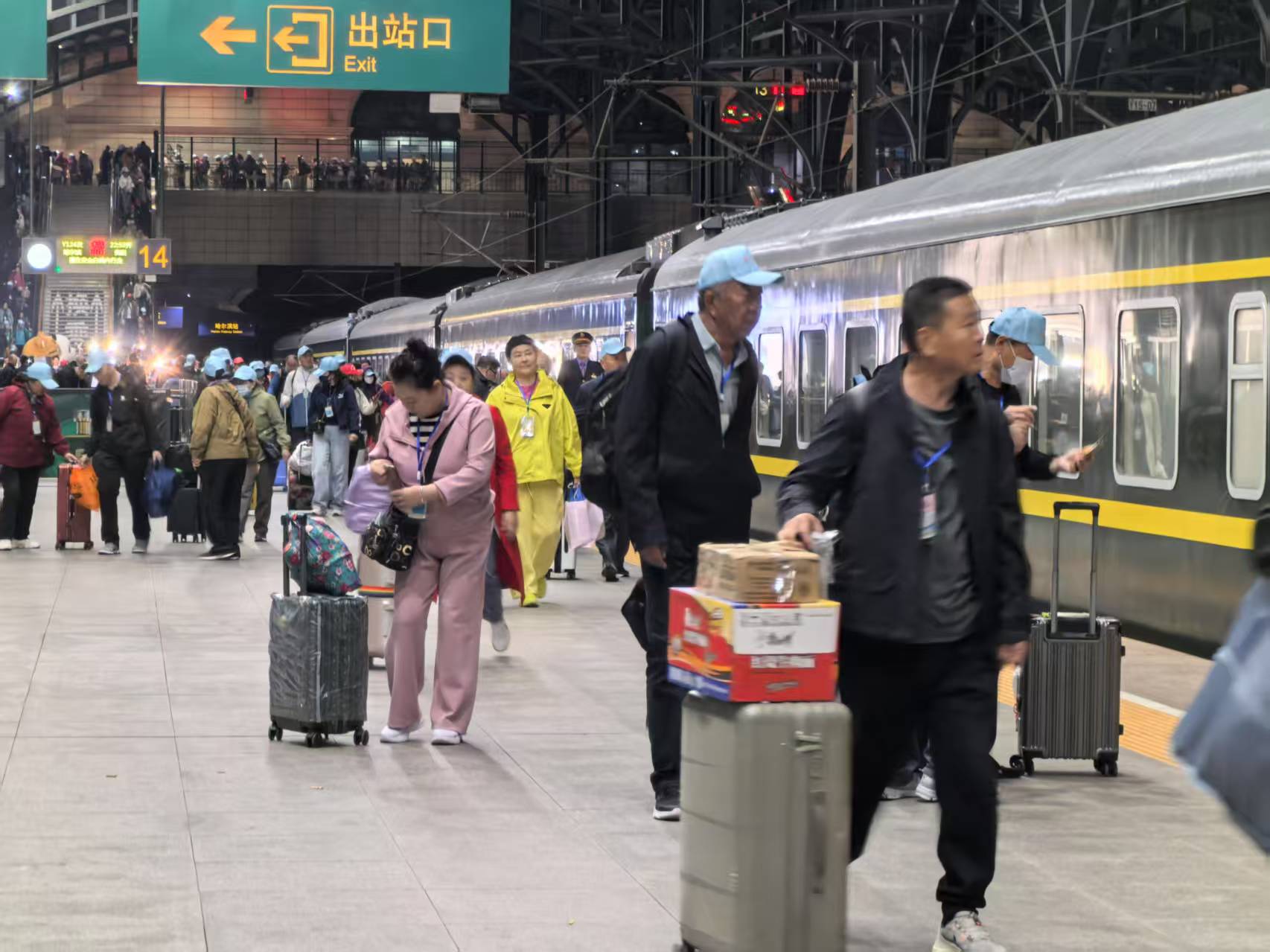 黑龙江网讯(记者 贾博)5月16日22时53分,在黑龙江省哈尔滨站,555名“银发”游客登上Y124次旅游专列,驶向贵州、重庆、四川、山西等地,开启为期15天的川渝四省畅游之旅。据了解, 这是中国铁路哈尔滨局集团有限公司今年开行的首趟川渝方向旅游专列。