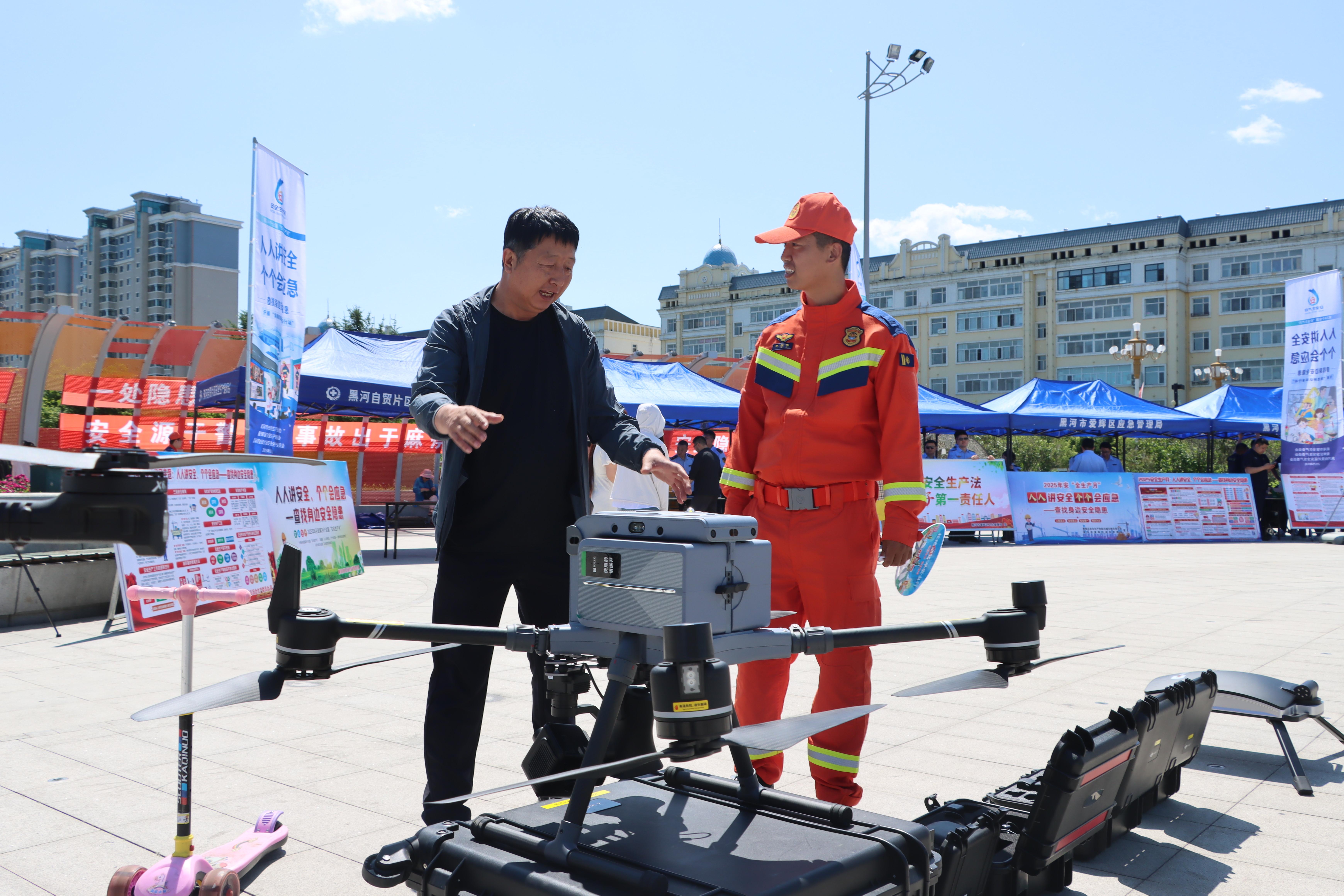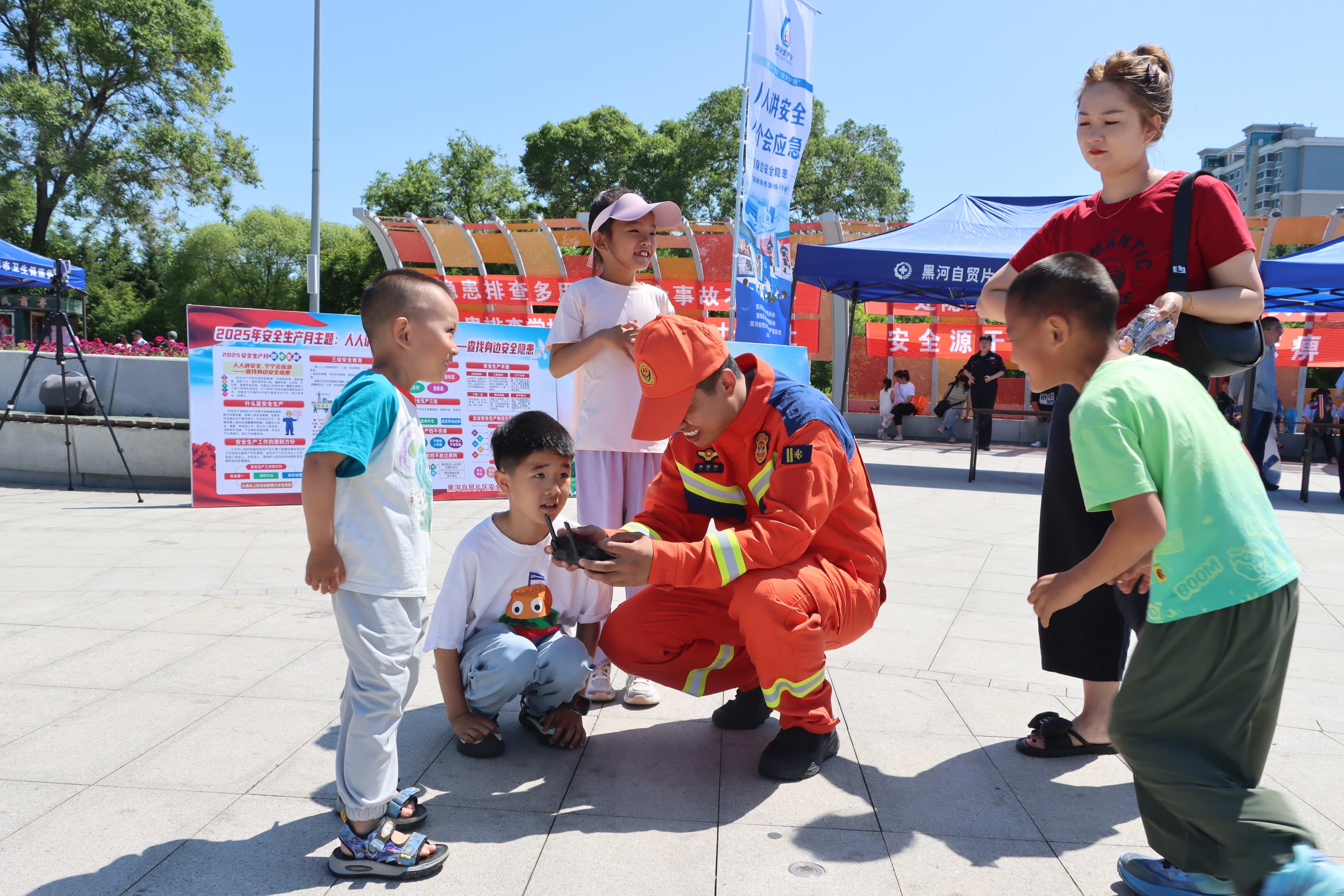 黑龙江网讯(蔡高文 王超 记者 徐楠)2025年6月是第24个全国安全生产月,6月15日,黑河市围绕“人人讲安全,个个会应急——查找身边安全隐患”在世纪广场开展“安全宣传咨询日”活动。黑河市森林消防支队立足职能定位,通过有奖竞猜、装备展示、科普宣传等方式,构建起“零距离”安全宣教矩阵,在边城掀起全民安全知识学习热潮。