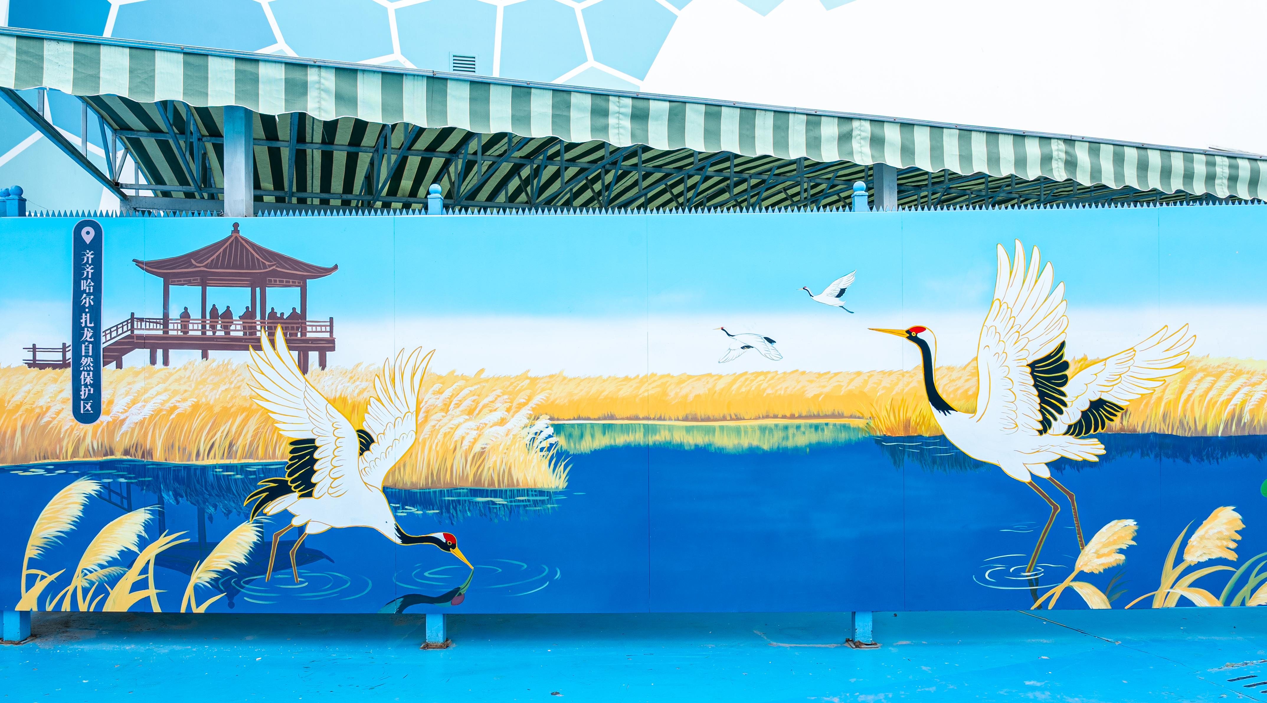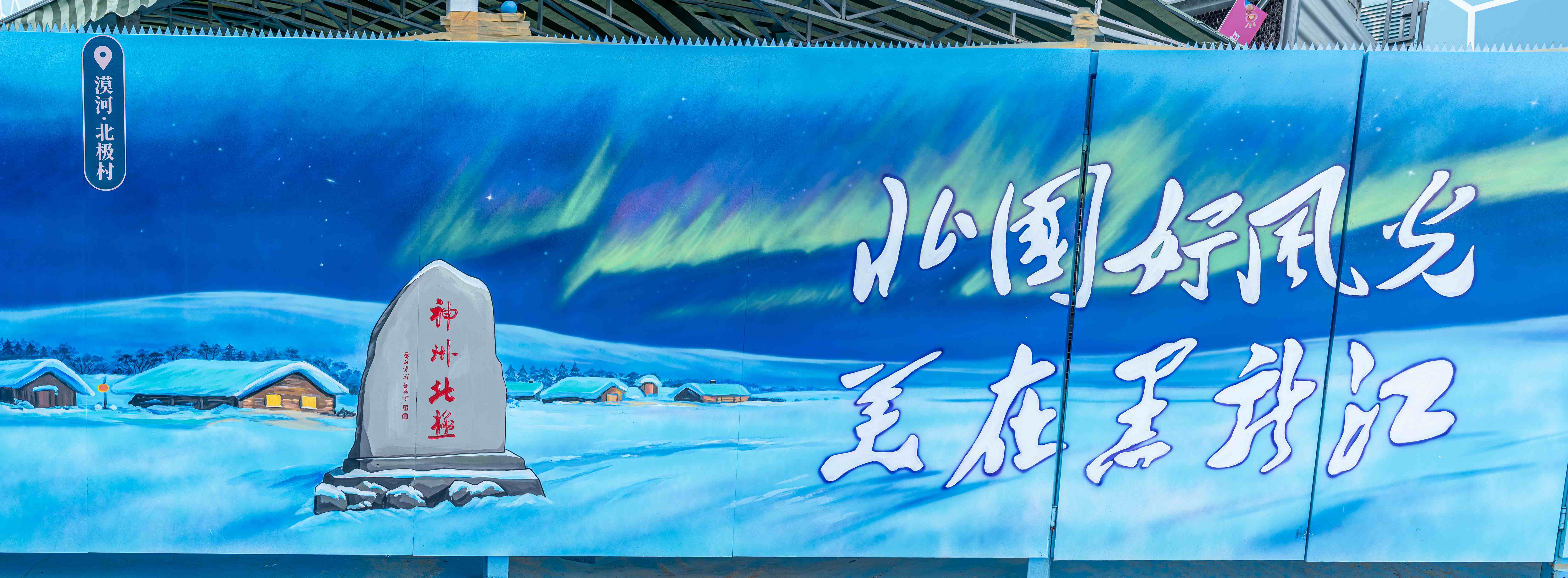 长廊内,纯手绘壁画惊艳十足。从旅发大会举办地佳木斯抚远市东极广场的日出盛景,到齐齐哈尔扎龙湿地的鹤舞翩跹、牡丹江镜泊湖的湖光山色、大庆杜尔伯特大草原的广袤壮美、漠河北极村的绚烂极光…… 游客漫步其中,仿若穿梭于龙江大地,一廊尽览龙江壮美山河的雄浑壮阔;还有中央大街的欧式风情、冰雪大世界的流光溢彩、太阳岛风景区的自然风光,以细腻笔触勾勒出哈尔滨浪漫风情的柔美婉约,让游客身临其境般感受黑龙江独特的地域文化与自然之美,领略“北国好风光,尽在黑龙江”的无限魅力。