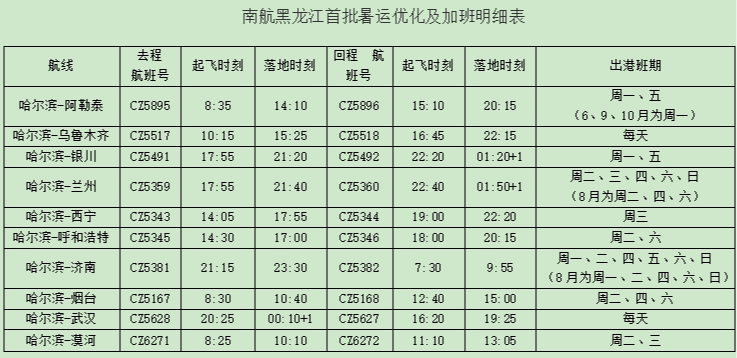 黑龙江网讯(谭世昊 侯晓明 记者 贾博)2025 年暑运大幕已启,为满足旅客出行需求,南方航空针对哈尔滨至新疆、西北、山东等方向的热门航线,在黑龙江市场推出首批暑运优化及加班航班。据了解,南航暑季在黑龙江省执行的航班总量预计将超 6000 班,这一举措将进一步提升旅客的出行体验,为大家提供更丰富的出行选择。