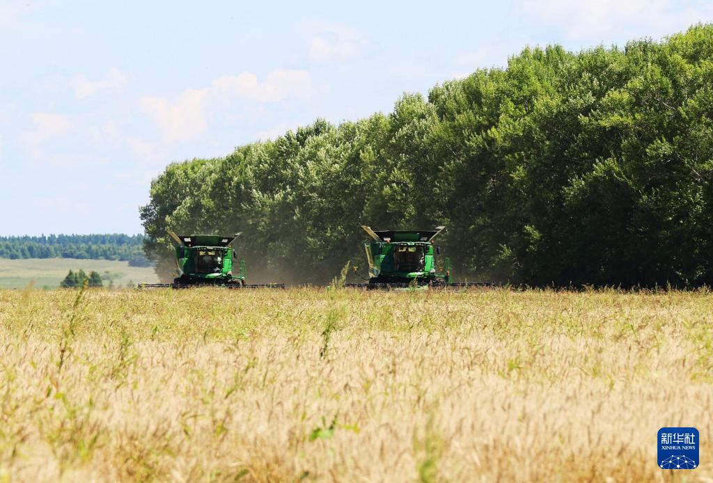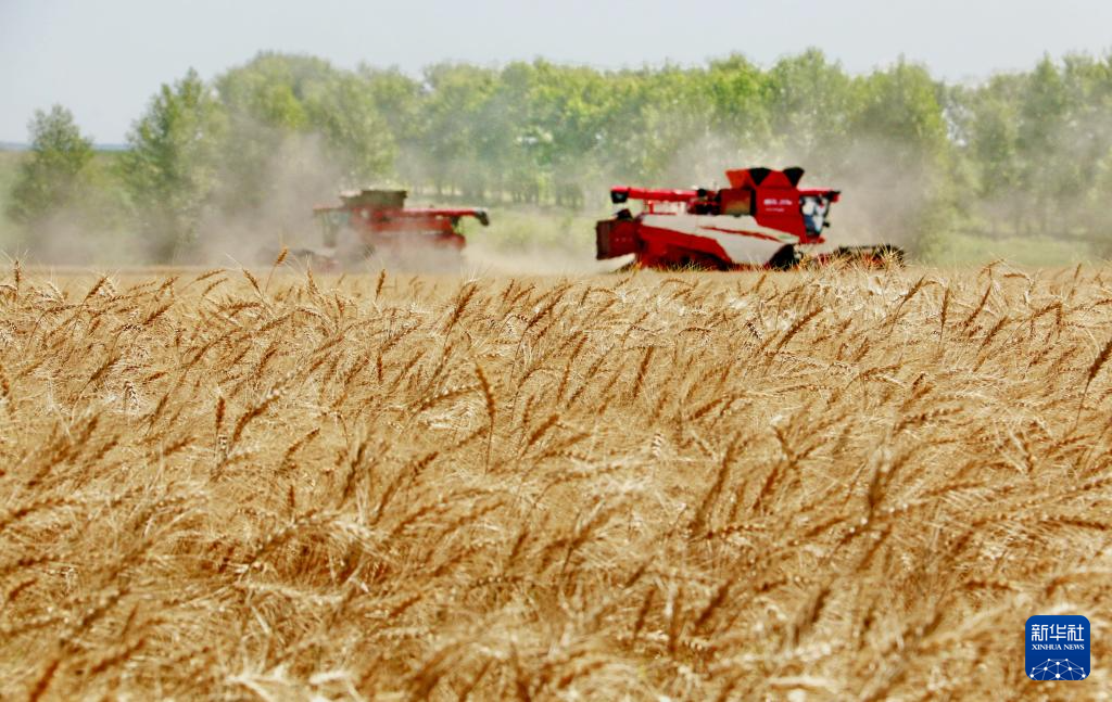 近日,“北大仓”黑龙江省小麦陆续进入成熟期。部分小麦种植区利用晴好天气,开展小麦抢收工作,大型收割机在麦田里来回穿梭,田间地头呈现出繁忙有序的丰收景象。