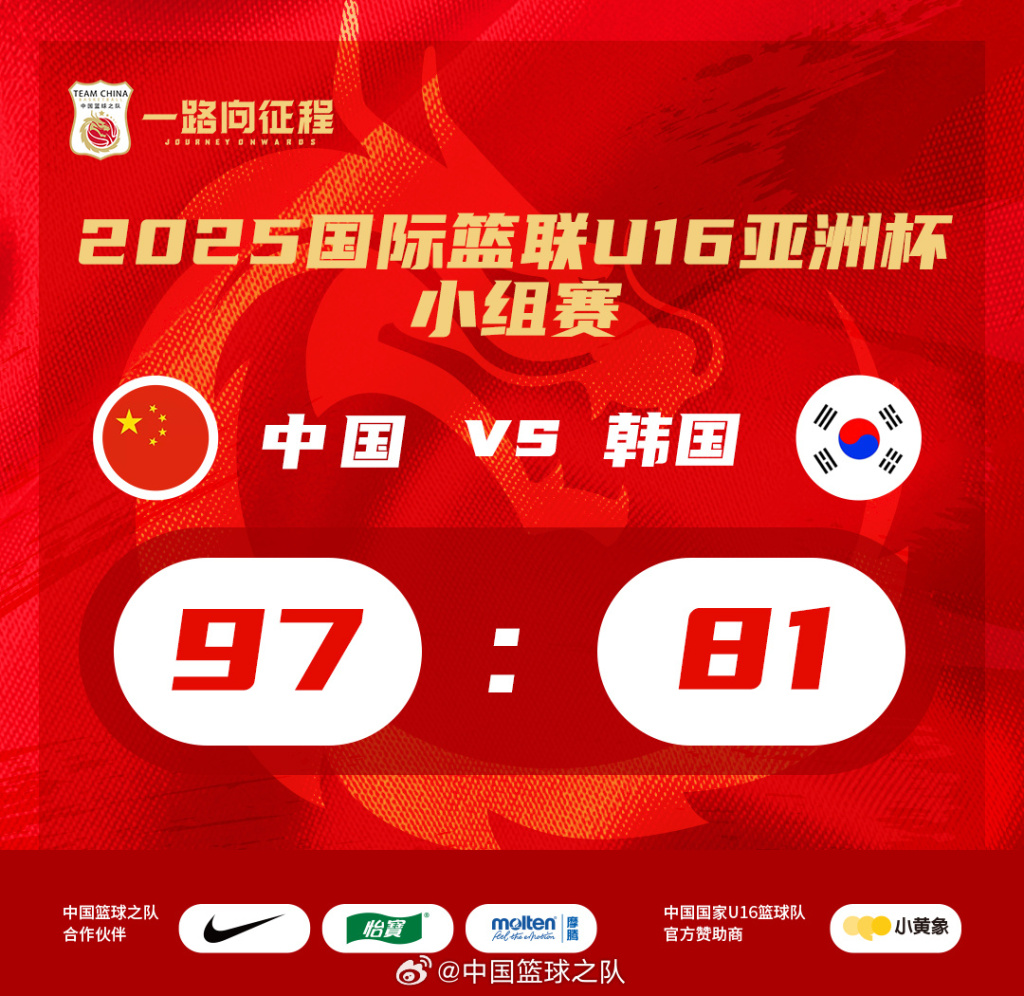 U16男篮大胜韩国。