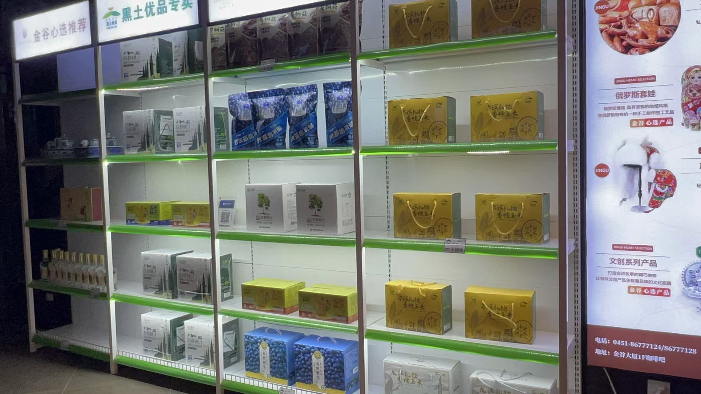 今年,由我省电商协会与中央大街管委会共建的“龙江好物选品中心”将品牌聚合推向新高度。选址江畔路与尚志胡同交汇处的中心,作为资源整合“中枢平台”,将500余款产品划分为“黑土优品”“九珍十八品”“黑龙江礼物”等主题展区,实现从展示到体验的全链条升级。直播间内,主播手持蓝莓果干讲述“黑土地腐殖质层厚达半米,孕育果肉饱满、风味浓郁”的故事;品鉴区里,游客品尝豆浆感叹“黑土地种出的豆香醇厚自然”。中心负责人张璐璐说,“我们不做简单货架陈列,而是为每款产品注入‘黑土故事’。比如这款马铃薯食品,会讲解北大荒黑土有机质含量高,所以土豆蒸煮后绵密回甜。”