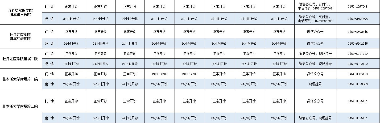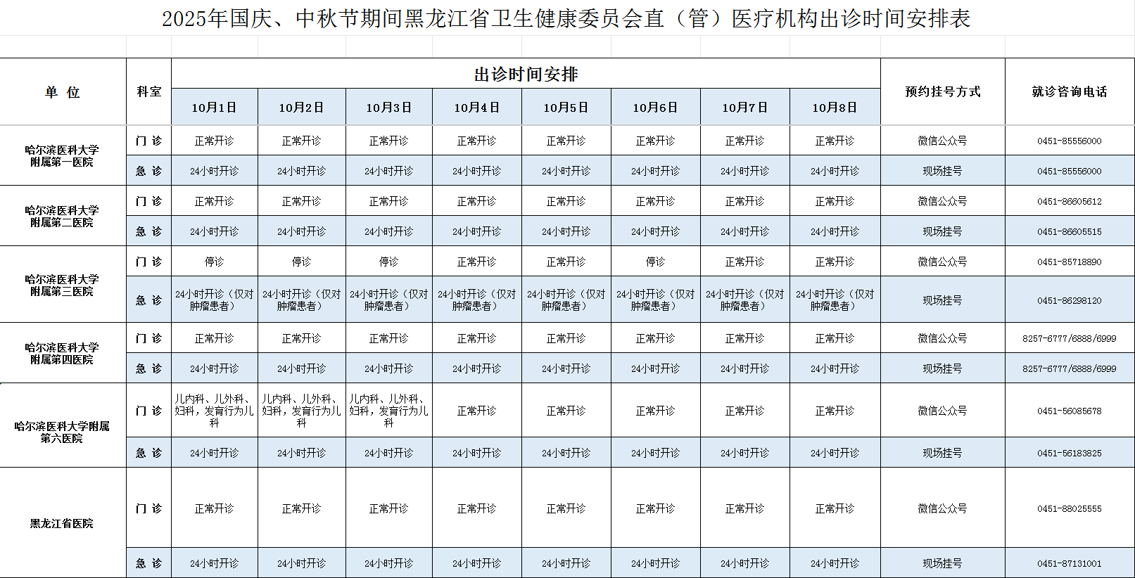 2025年国庆、中秋假期黑龙江省卫生健康委员会直(管)医疗机构出诊时间表