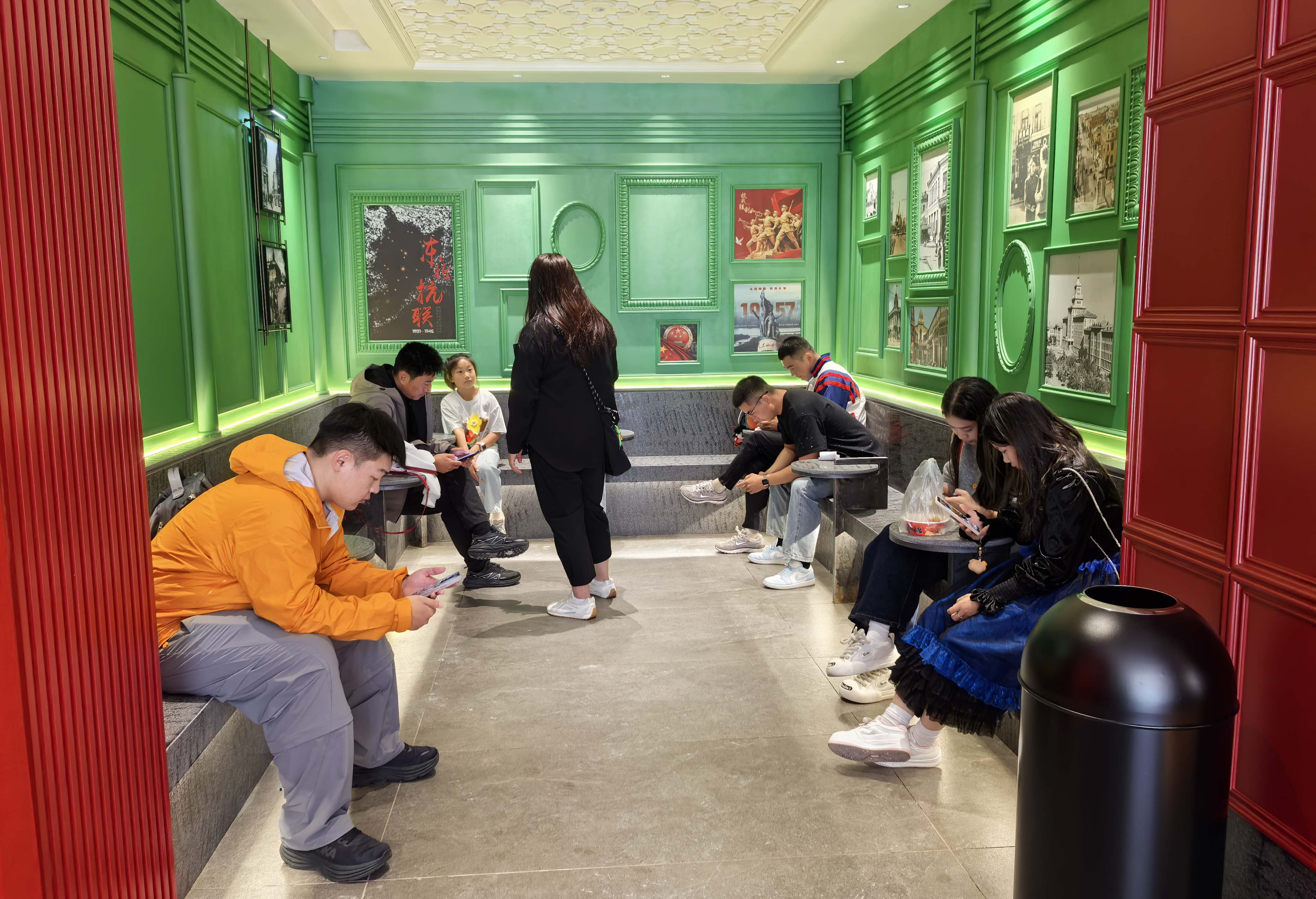 作为品牌旗下高端线代表,该店在道外巴洛克店基础上完成全方位迭代。300余平方米空间采用“国潮基因+欧陆风情”设计语言,既保留品牌标志性红色文化元素,又通过现代布局适配多元需求——开放式吧台服务日常消费客群,主题打卡区满足文旅拍照需求,独立分区可承接小型沙龙,有效应对中央大街高频客流特性。