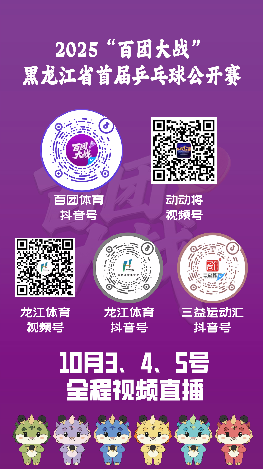 2025“百团大战”黑龙江省首届乒乓球公开赛赛事全程共计3天,比赛全程会在不同场地开启视频直播+照片直播,敬请关注。