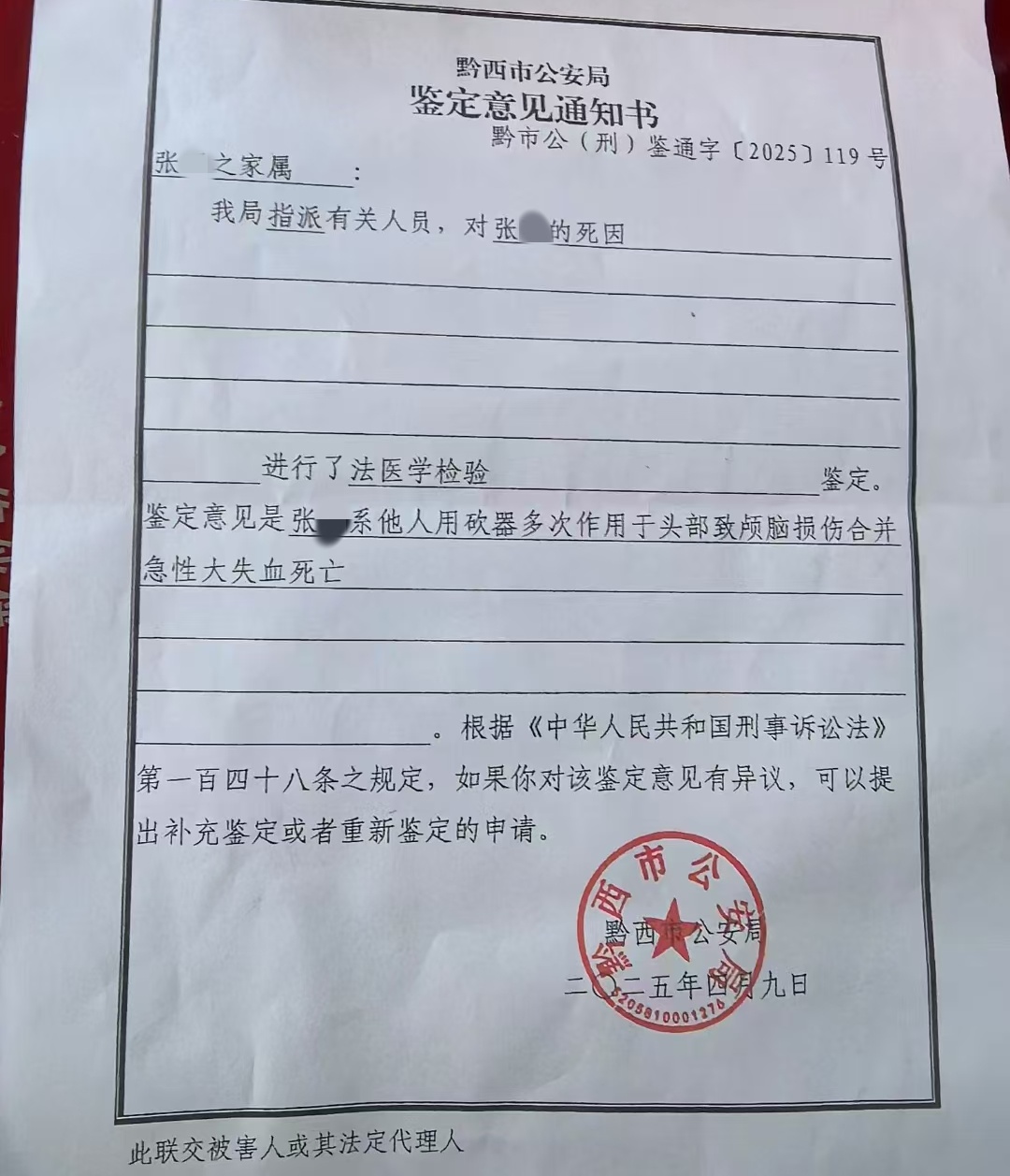 2025年4月2日,贵州黔西市一男子在家中持刀对妻子头部多次挥砍,致其死亡。10月11日,被害人母亲陈女士向维度新闻记者透露,该案将于10月16日开庭。“这已经是他第三次犯罪,不能让这样的人再逍遥法外,希望能依法严惩。”陈女士说。
