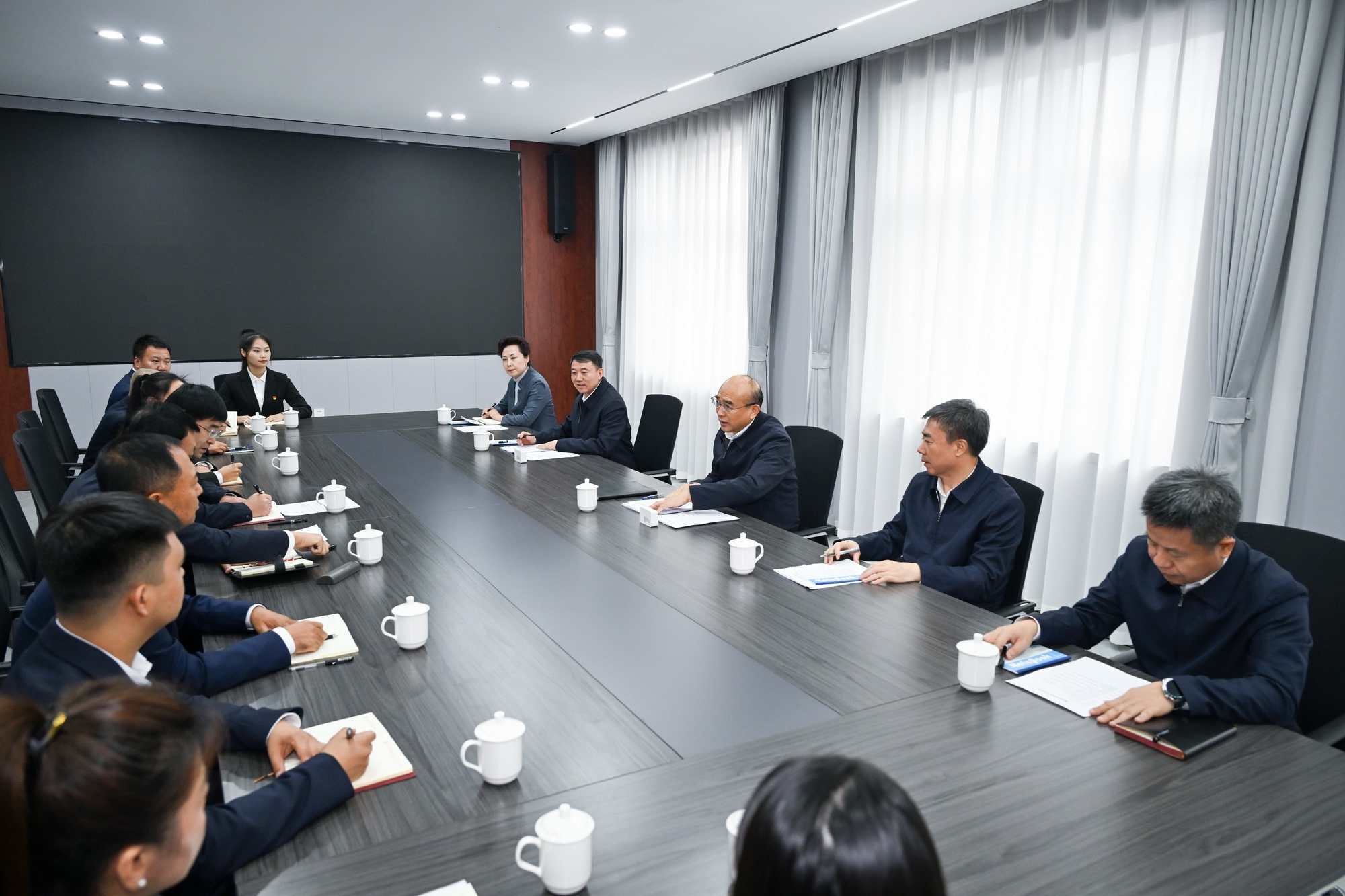 在海伦市通达社区党群服务中心,许勤围绕学习贯彻全会精神与社区工作者、基层党员代表等座谈交流。