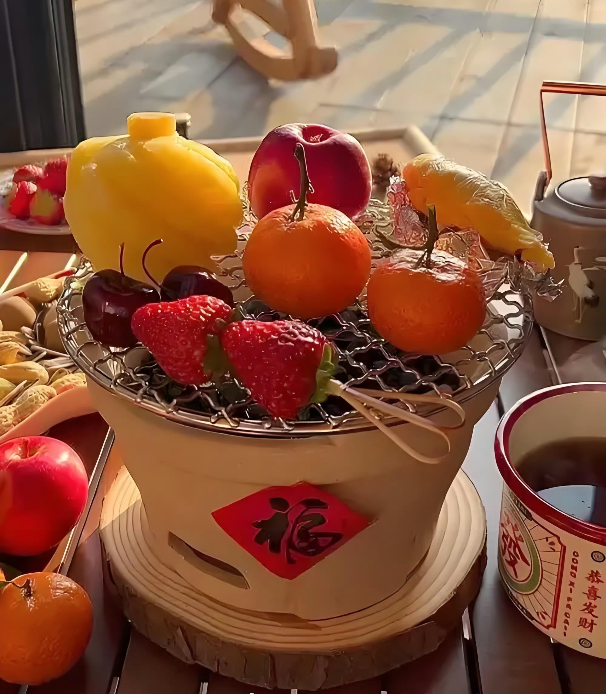 △消防员将切开后藕断丝连的提子放入微波炉进行实验,结果出现了火花