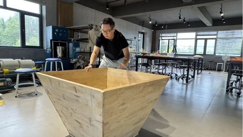 “守护与传承,开拓与创新,是我们的使命。”王洋老师分享道。“鐵驪豐斗”的故事要从“鐡驪窑”说起。“鐡驪窑”作为龙江本土特色陶艺,曾在历史长河中占有一席之地。然而,随着时代的变迁,“鐡驪窑”也曾一度陷入沉寂,直到王洋团队的入驻,才为“鐡驪窑”带来了新的生机。王洋团队历时一年在小兴安岭图南山脚下的古老村落开启了一系列关于“鐡驪窑”的乡野调查,恢复并创新了鐡驪窑的烧制工艺。从泥土的选择到烧制的温度,每一个环节都进行了反复的试验,他们找回了那失落已久的技艺。解锁出天地淬炼的陶艺密码让千年窑火重新燃起,烧制出了“鐵驪豐斗”,这个世界上最大的陶瓷米斗。如今,“鐵驪豐斗”成为了“鐡驪窑”的代表作,它是传承与创新的交汇点,涌动历史的脉搏,诉说千年的故事,书写崭新的传奇。