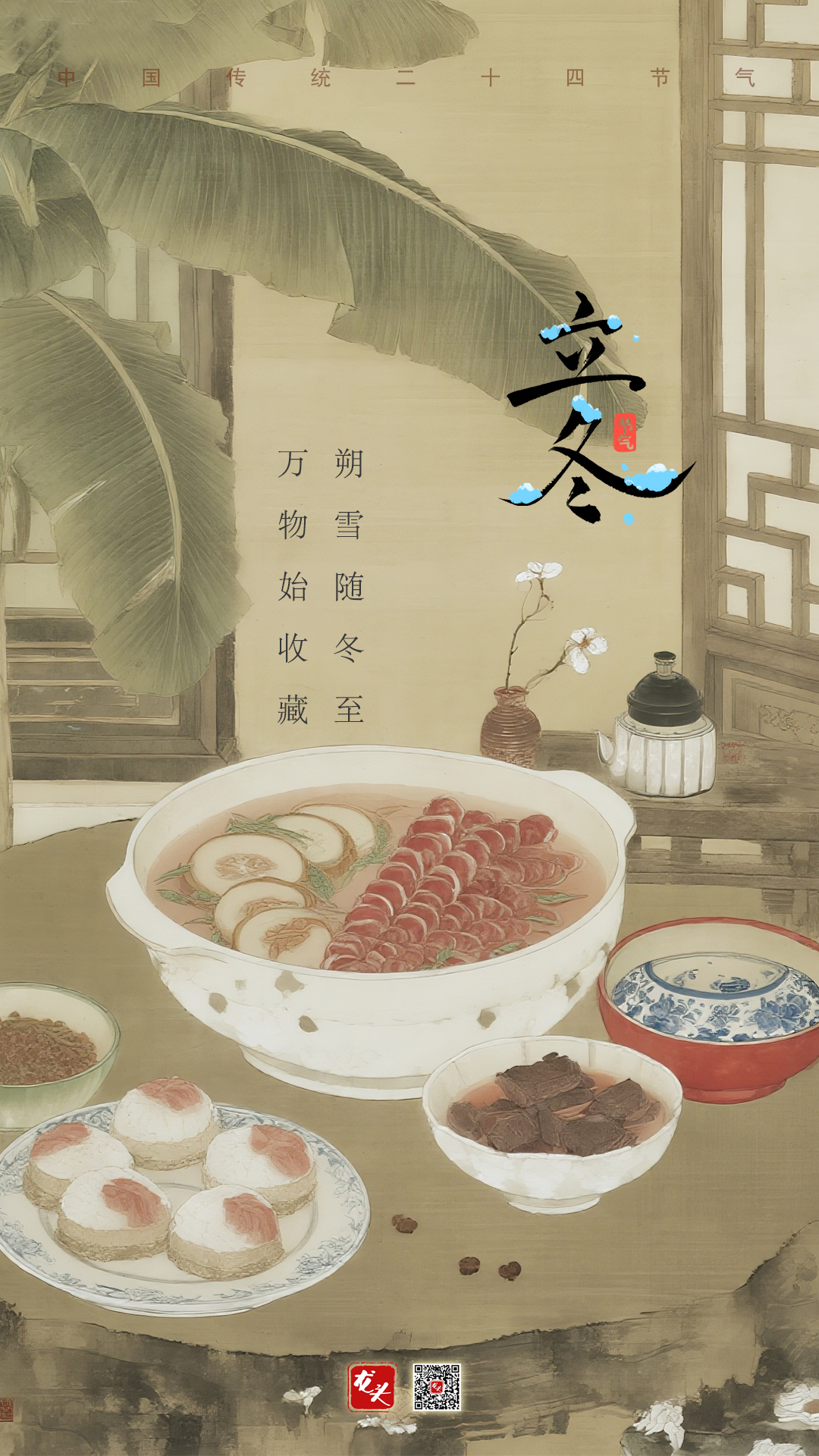立,建始也;冬,终也,万物收藏也。立冬,意味着生气开始闭蓄,万物进入休养、收藏状态。其气候也由秋季少雨干燥向阴雨寒冻的冬季气候过渡。