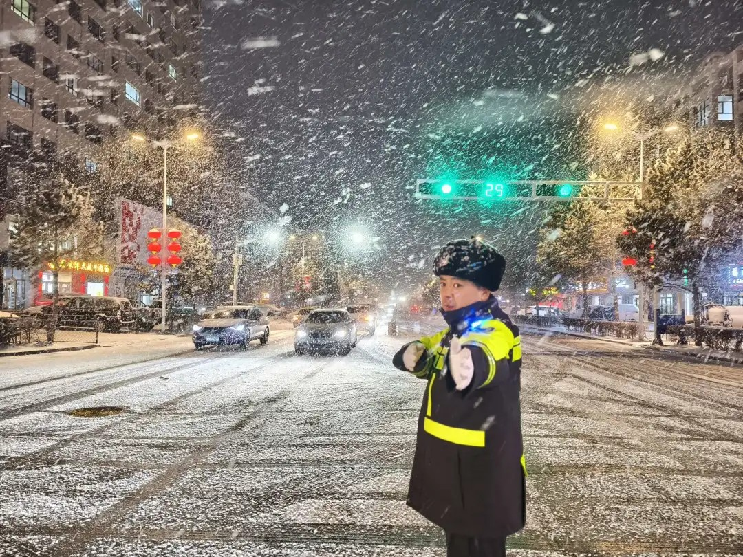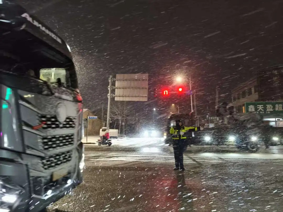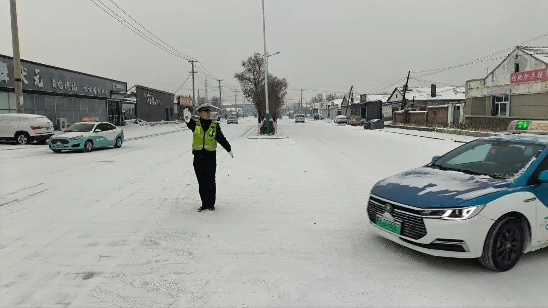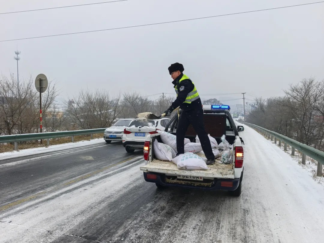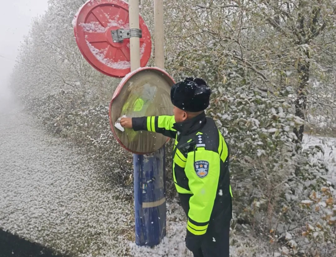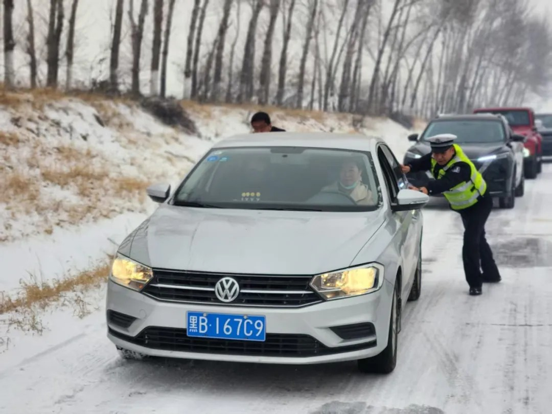 交警提醒:雪天行车请控制车速、保持车距。如遇故障或事故,请开启双闪、设置警示标志,人员移至安全地带后报警。