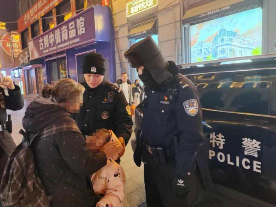 “您先别着急,我们这就派警力寻找,一定尽快把孩子找到!”2025年11月22日18时许,中央大街治安巡逻队接到游客寻人求助,游客称自己五岁的孙女在逛中央大街时走失,语气十分焦急。民警耐心安抚老人,同时迅速将孩子体貌特征通报周边巡逻警力,并通过查看监控视频进行追踪。仅用15分钟,便将孩子送回老人身边。孩子紧紧抱住奶奶的瞬间,温暖了人心,也照亮了寒夜。