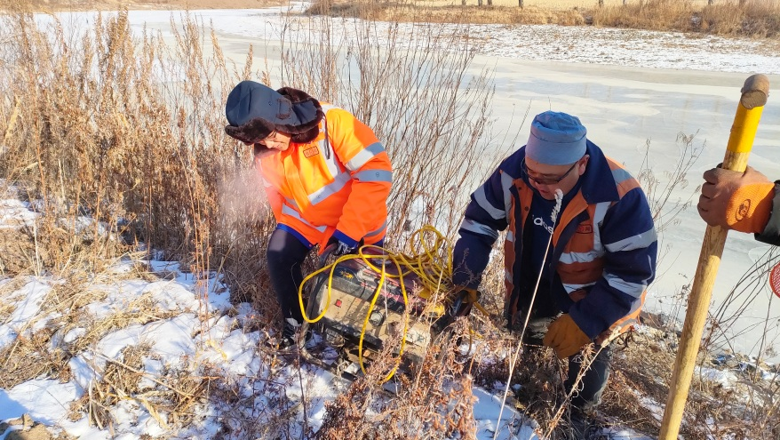 16时左右,回敬涛和他的工友们在山坡冰体上凿出一个宽约1米、长度在10米左右的冰槽。为了防止山泉水上冻,使细小的水流能通过涵洞流入穆棱河。他们还在冰槽上面蒙上了防寒塑料布。当日他们清理积冰约12立方米。