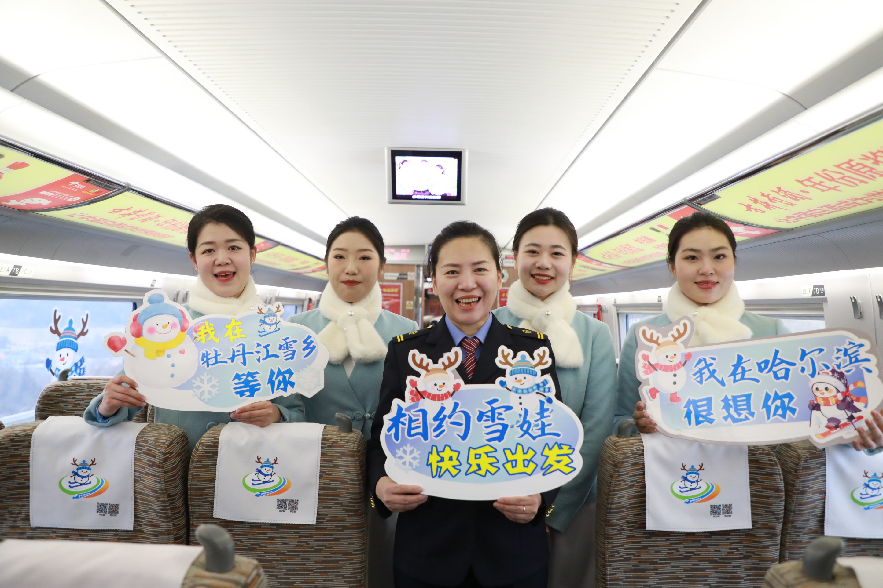 黑龙江网讯(孙涛 记者 石启立)12月23日,一列编组8节车厢,满载冰雪元素的G3512次“雪娃号”列车从鸡西西站启程,驶向北京。在哈牡高铁开通七周年之际,这趟由中国铁路哈尔滨局集团公司(以下简称“哈尔滨局集团公司”)打造的冰雪主题列车化身一张移动的“冰雪名片”,带领旅客沉浸式感受龙江冰雪文化。