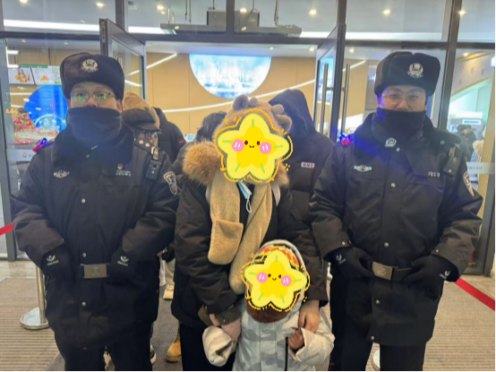12月21日晚,冰雪大世界灯火璀璨、人流如织。安埠街派出所辅警葛永超和车延超在雪花摩天轮下执勤时,忽然听见细微的哭声,一个四五岁的小男孩正独自站在人群边,小脸冻得通红,眼泪汪汪。“我找不到妈妈了……”孩子抽泣道。葛永超立即蹲下,用警服裹住孩子冰凉的小手,轻声安抚:“别怕,警察叔叔帮你找。”车延超则联系景区广播站,并疏散人群开辟通道。