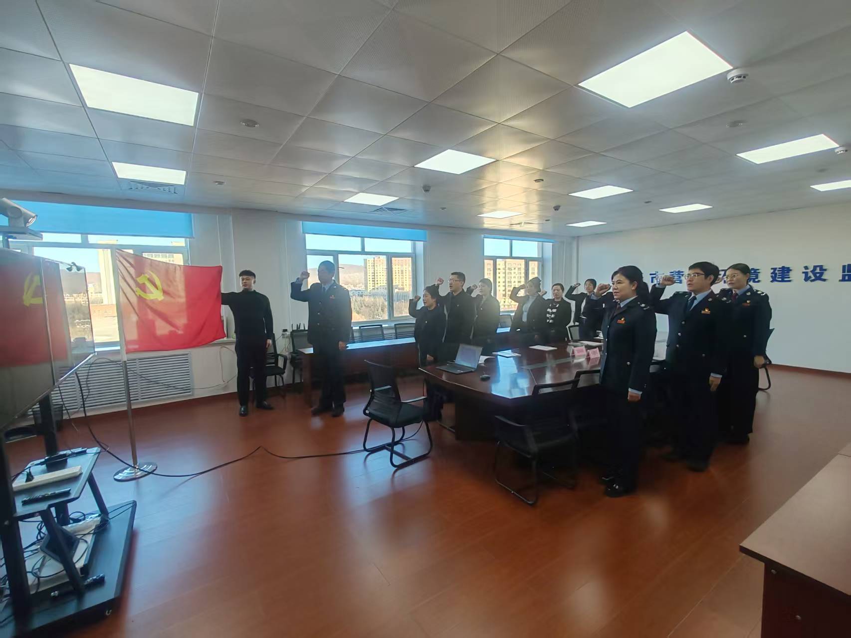 廉政建设是此次联建活动的重要一环。活动中,全体党员共同观看了纪录片《反腐为了人民》,通过直观的画面和真实的案例,深刻感受到了党中央在反腐工作上的坚定决心和取得的显著成效。观影结束后,党员干部们结合自身工作实际,逐一分享感悟。大家纷纷表示,要以典型案例为镜鉴,时刻保持清醒的头脑,绷紧廉洁自律这根弦,在纳税服务和营商环境监督等工作中严格遵守纪律底线,规范权力运行。活动最后,全体党员面向党旗重温入党誓词,用铿锵誓言坚定了践行初心使命、忠诚履职尽责的信念,以清廉底色护航营商环境建设。