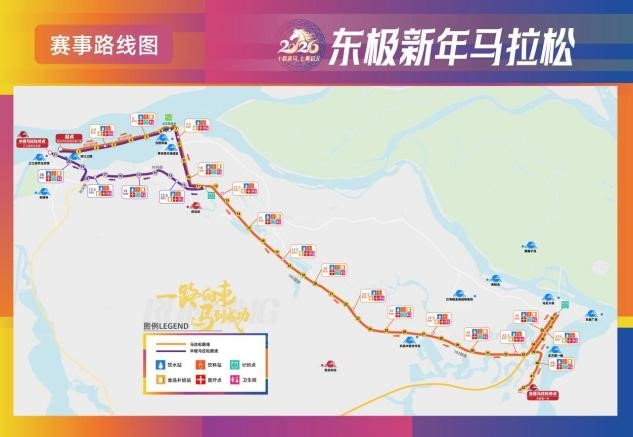 作为全球五大冰上马拉松之一,东极马拉松往届赛道全程铺设于千里冰封的黑龙江江面上,起点与终点同址设置,跑者需在天然冰层上完成全程竞技,是国内唯一经田协认证的纯冰面马拉松赛道。而本届赛事则对路线进行了全面重构,半程马拉松(21.0975公里)从黑龙江赛场(沿江路)出发,经白四爷庙、深水港道路、外环路等路段,最终抵达三江生态馆北门,告别纯冰面赛道的单一体验;全程马拉松(42.195公里)则在途经黑瞎子岛路段折返后,延伸至南岗村餐厅,路线串联起沿江路、京抚公路等多条路段,将冰面赛道的壮阔与陆地赛道的多样完美融合。