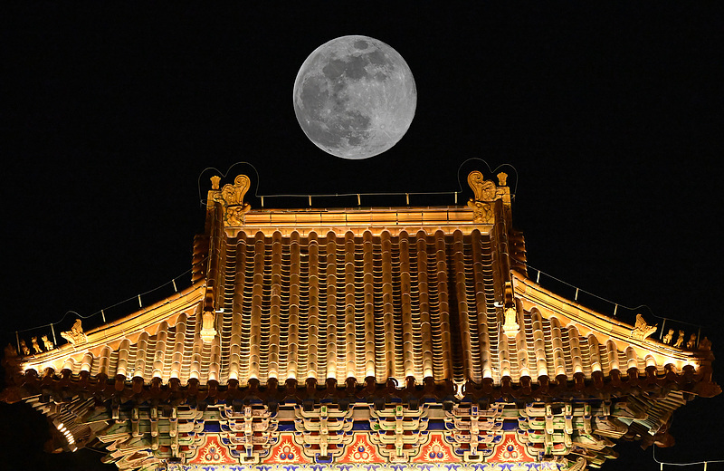 △1月3日,辽宁沈阳,2026年首个超级月亮现身夜空。