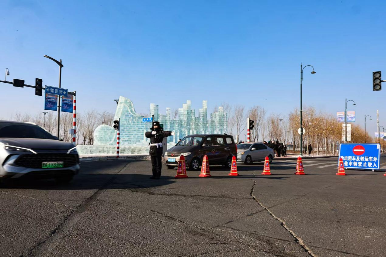 交管部门超前研判交通流量,科学布警、精细管控、动态调度。围绕冰雪大世界及周边路网,通过“定点疏导+动态巡控”“梯次管控、分区引导”等科学措施,有效均衡了路网压力,保障了主干道畅通。同时,在强化秩序管理之余,执勤民警主动为游客提供指路咨询、紧急救助等暖心服务,让有序交通与温暖帮助一路相伴。