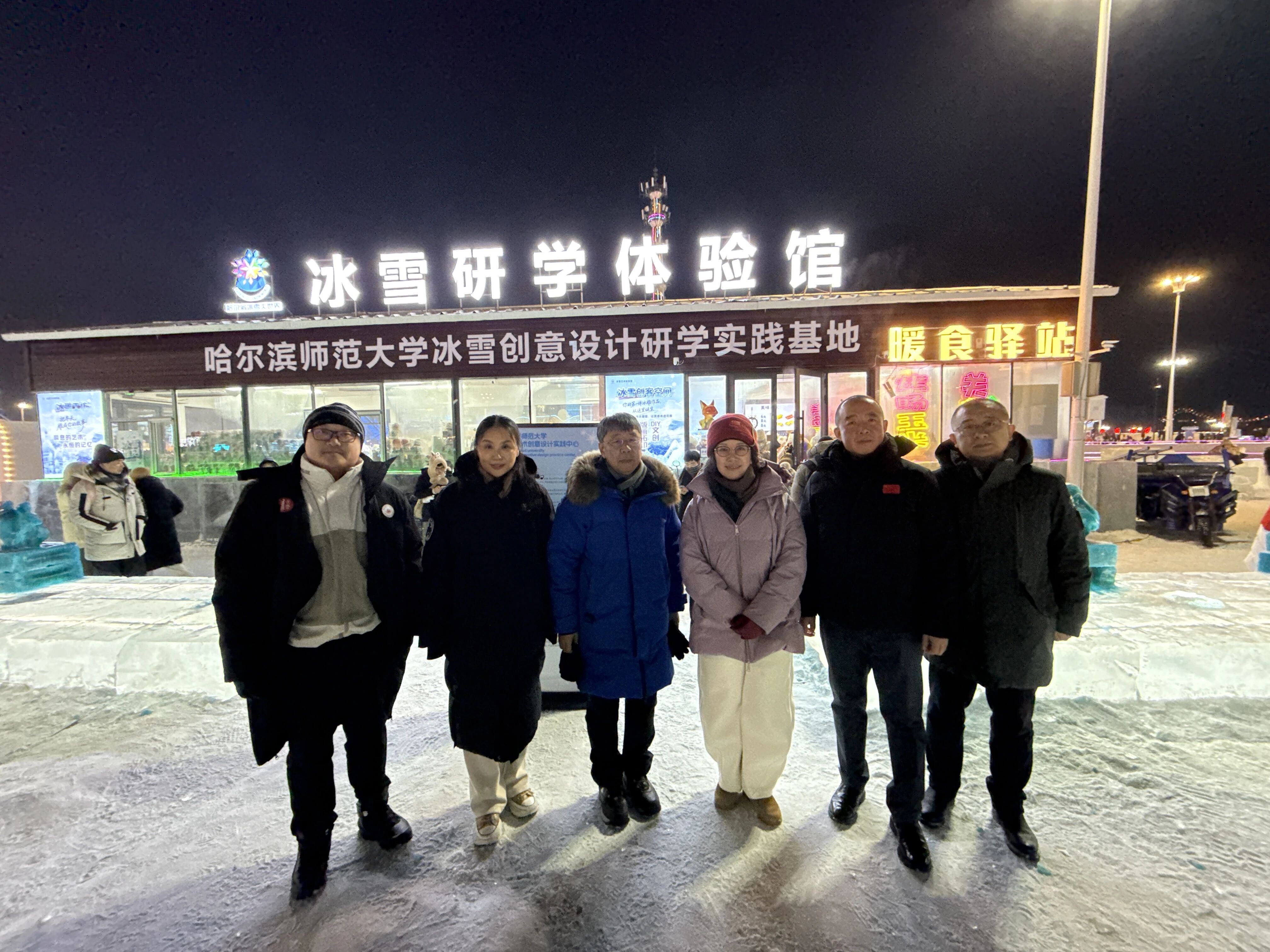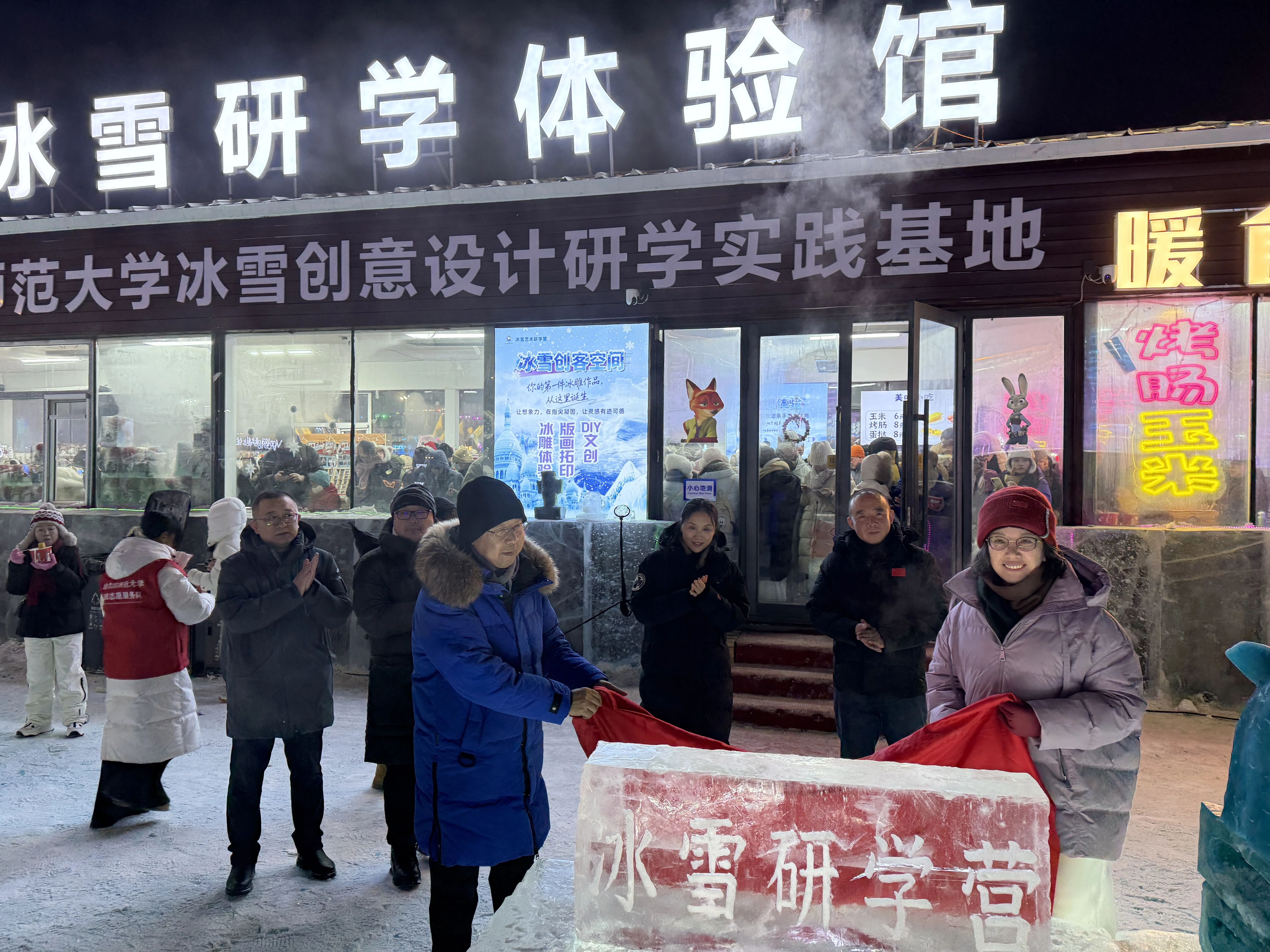 活动中,校企领导为“哈尔滨师范大学冰雪研学实践基地”揭牌。校企双方回顾了多年来的合作历程,并就冰雪艺术创作、人才培养、产学研融合等议题交换了意见,对未来合作方向达成了共识。研学营师生参观了冰雪大世界中的冰雕作品,实地感受冰雪艺术的独特魅力与技术创新。