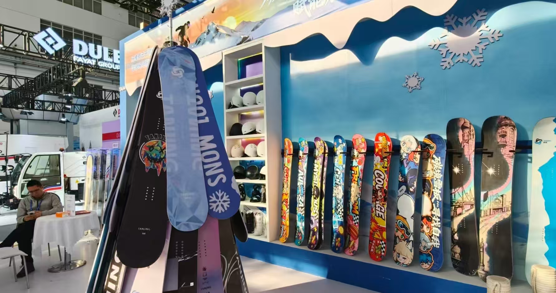 “这雪板也太惊艳了!不仅颜值高,拿在手里还特别轻便。”来自厦门的游客刘女士挤到展台前,手指轻抚过印有冰雪景观图案的文创滑雪板,满眼欣喜地向工作人员询问,“这板子滑行起来灵活度怎么样?日常保养方便吗?”