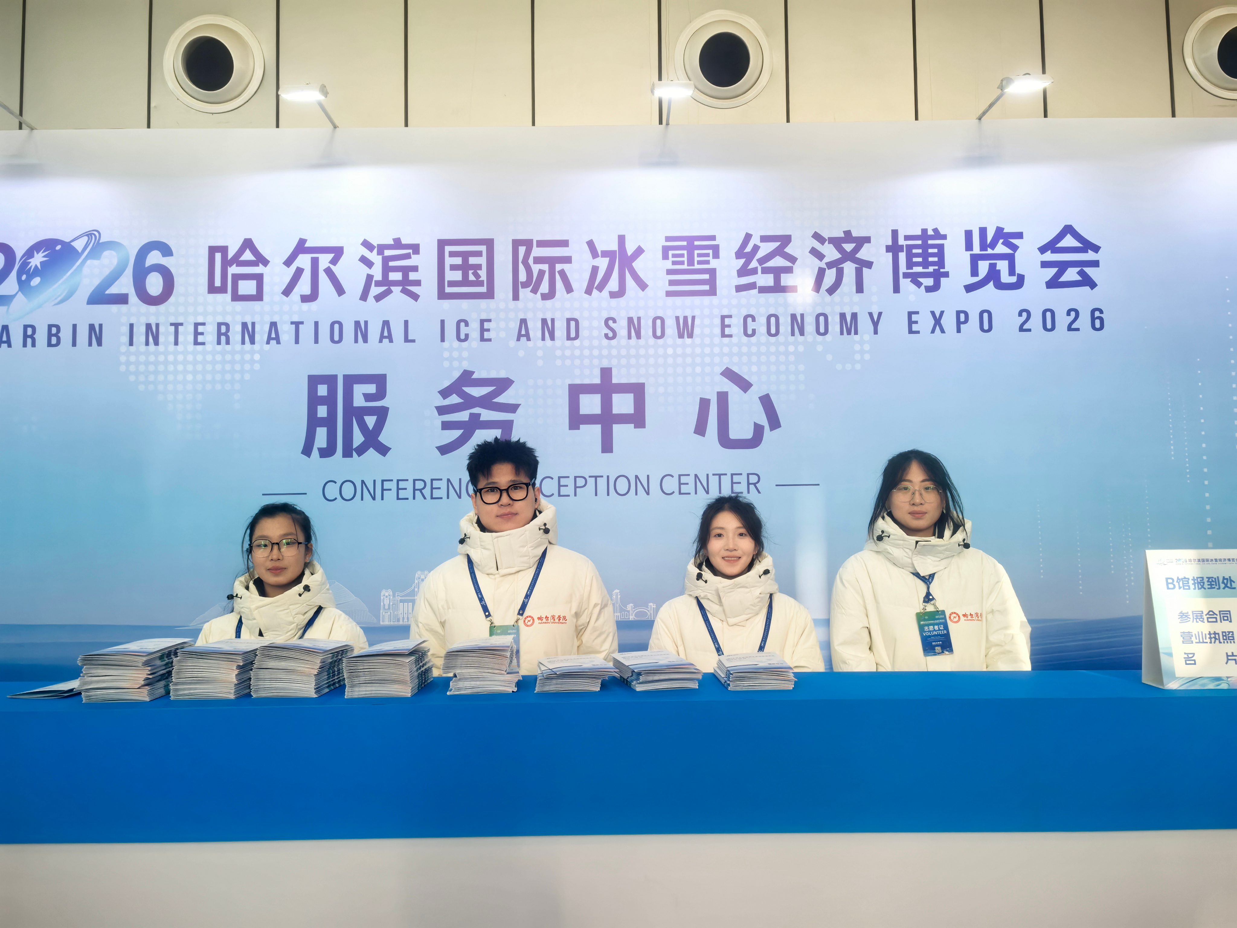 早在12月底,团哈尔滨市委就牵头为即将上岗的志愿者完成系统的岗前培训,于1月2日正式上岗。志愿者们严格按照“组团协作、分区负责”的组织管理模式,全面投身冰博会前期筹备与展会保障工作,从物资整理到设备调试,大家以饱满的精神状态和专业的服务姿态,助力盛会顺利启幕。