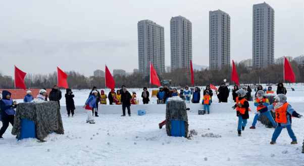 参加冰雪勇士雪仗比赛的选手们攥着雪球,弯腰、蓄力、投掷一气呵成,有人躲在障碍物后伺机反击,有人组队上演包抄和冲锋“战术”,雪团纷飞间,欢呼声、尖叫声此起彼伏,赛场俨然成了欢乐的雪海。